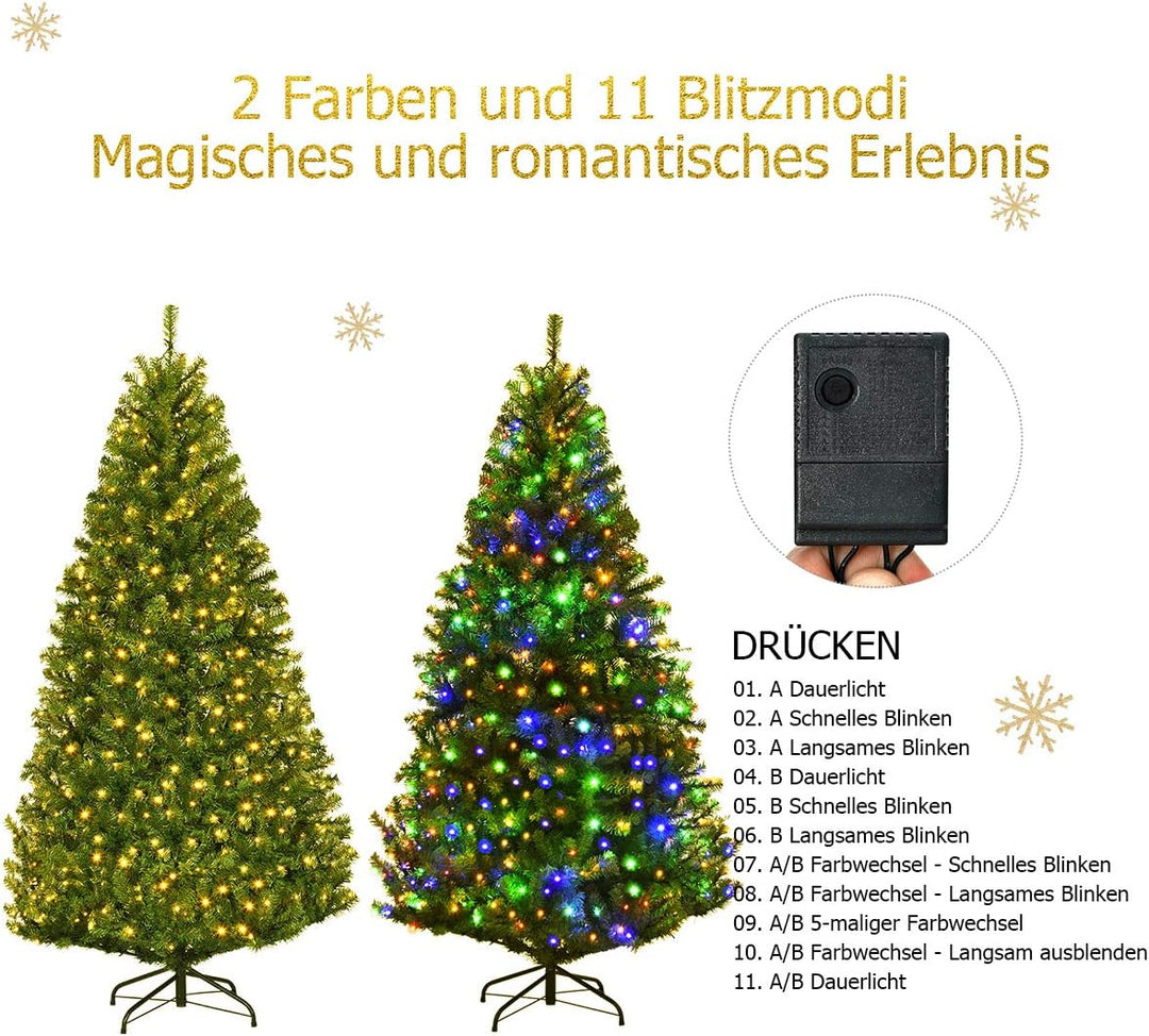- 🎄【Bunte LED-Leuchten mit 11 Modi】 Dieser Weihnachtsbaum ist mit 100/150/350 LED-Leuchten ausgestattet, die zwischen vierfarbigem Licht und warmweisser Farbe wechseln. Es gibt 11 Lichtmodi an, wie z.B. schneller Aufblitzen, langsamer Blitzen,
