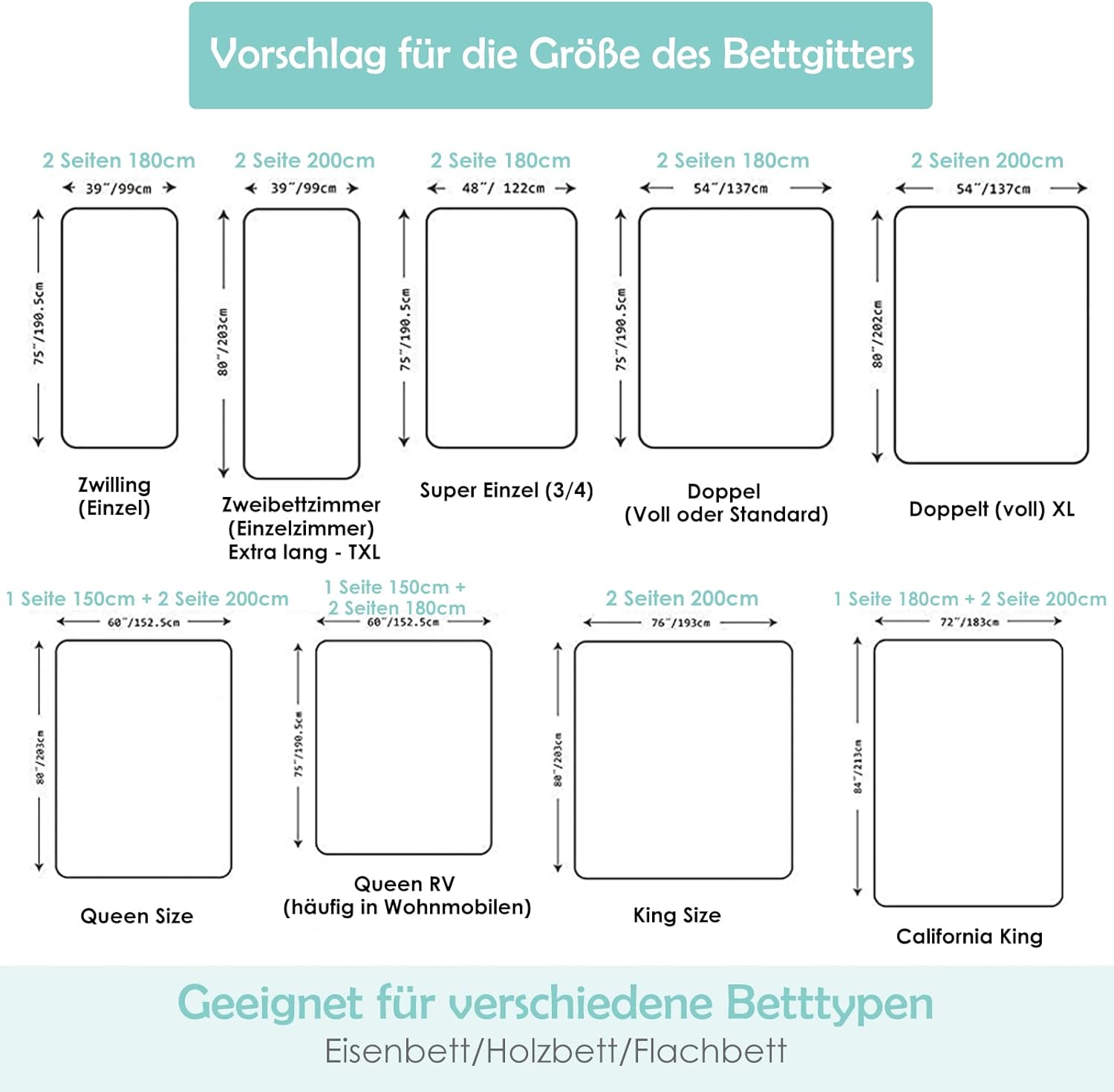 - 【Einfacher Aufbau & vielseitiger Einsatz】 Mit der detaillierten Anleitung und dem Zubehör gelingt der Aufbau schnell und einfach. Unser Bettgitter eignet sich für die meisten Arten von Betten. Falls Sie mehrere Seiten sichern möchten, sollten Sie mehrere Gitter kaufen.