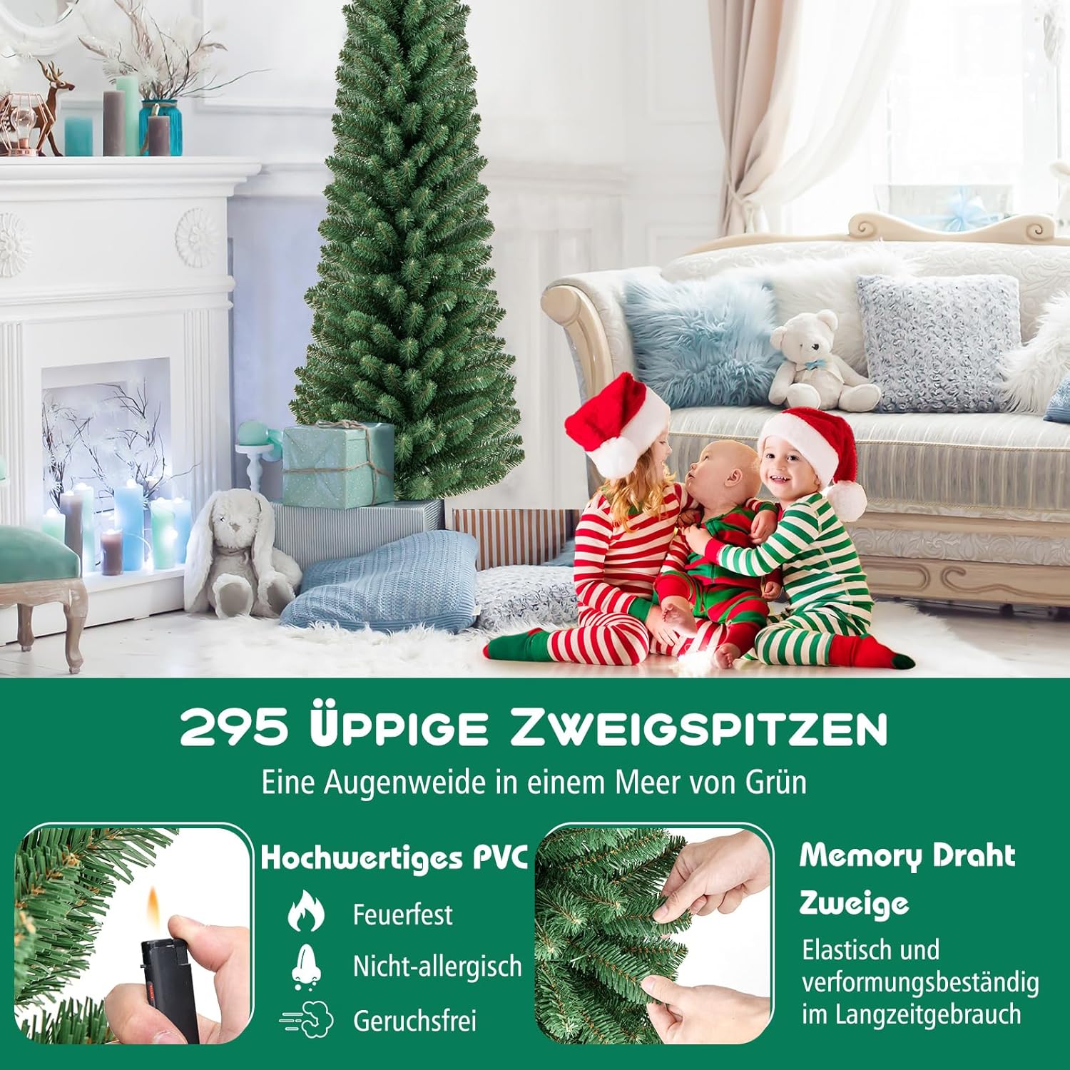 - 【Benutzerfreundliches Material】Der schlanke Tannenbaum besteht aus hochwertigem PVC und ist langlebig und geruchsfrei. Das feuerfeste Material sorgt für eine sichere Verwendung in der Weihnachtszeit, während seine antiallergische Eigenschaft ihn