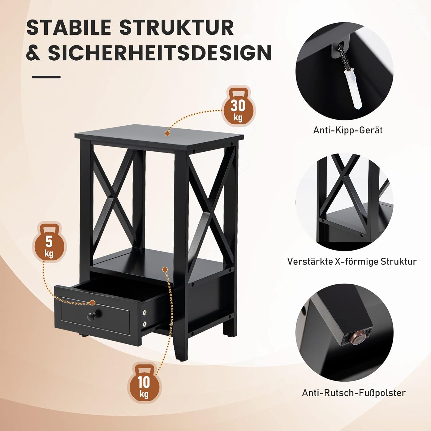 - 【Hochwertiges Material und durchdachte Details】Der gesamte Beistelltisch ist aus hochwertigem und langlebigem MDF für eine lange Lebensdauer gefertigt. Ausgestattet mit einer Kippsicherung auf der Rückseite kann dieser Nachttisch fest an der Wand