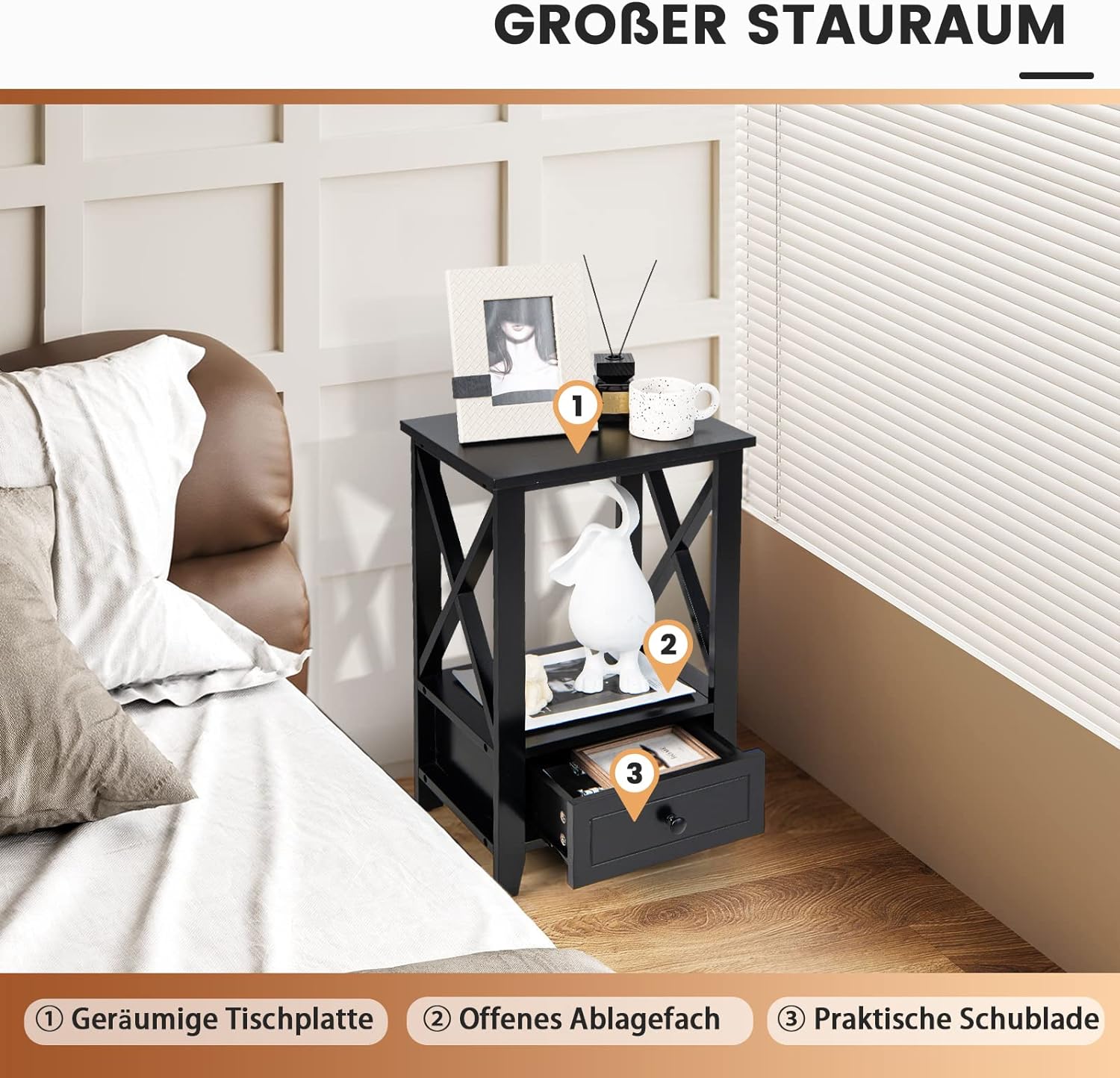 - 【Moderner Stil und vielseitige Verwendung】Dieser Nachttisch im X-Design kombiniert modernen Charme und praktische Aufbewahrung und ist eine perfekte Ergänzung für Ihr Zuhause. Darüber hinaus können Sie ihn als Nachttisch im Schlafzimmer, als