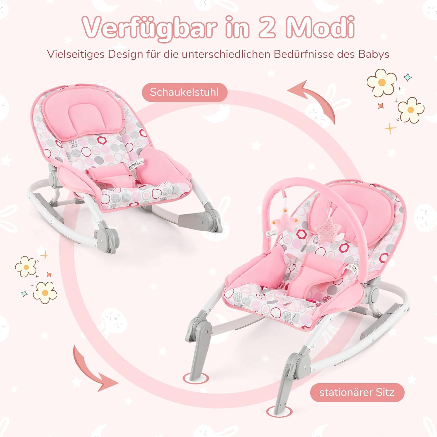 - 【Verfügbar in 2 Modi】Mit 2 Stabilisierungsfüssen kann diese Babywippe nach Belieben zwischen Schaukelmodus und festem Modus umgebaut werden, was den unterschiedlichen Bedürfnissen des Babys gerecht wird. Im Schaukelmodus beruhigt die sanfte Hin-