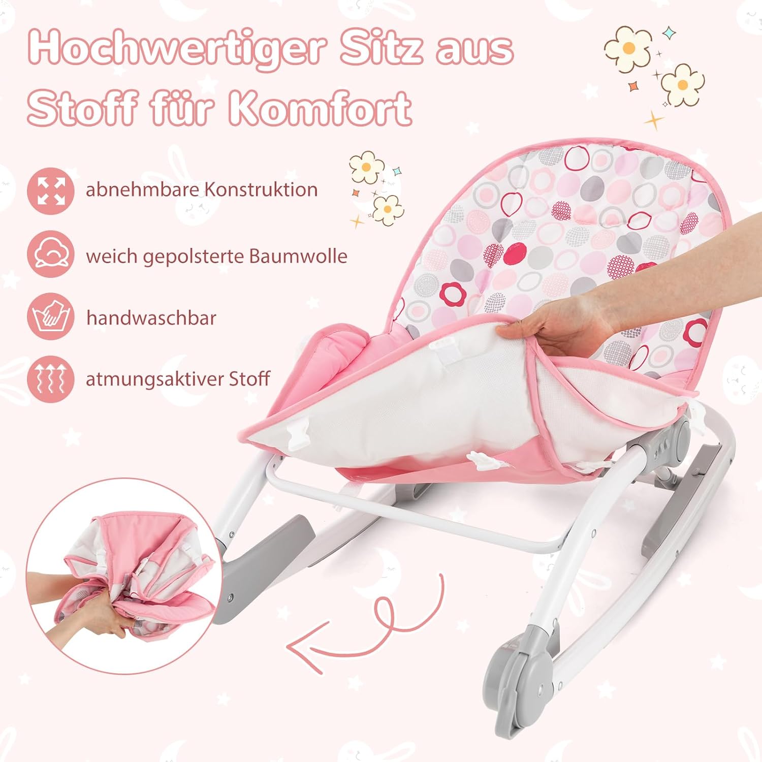 - 【Klappbares & tragbares Design】Diese Babywippe erfordert keine Montage und ist einfach zu bedienen. Die kompakte Grösse nach dem Zusammenklappen nimmt nicht zu viel Platz ein, was die Raumausnutzung verbessert. Dank des leichten Designs können