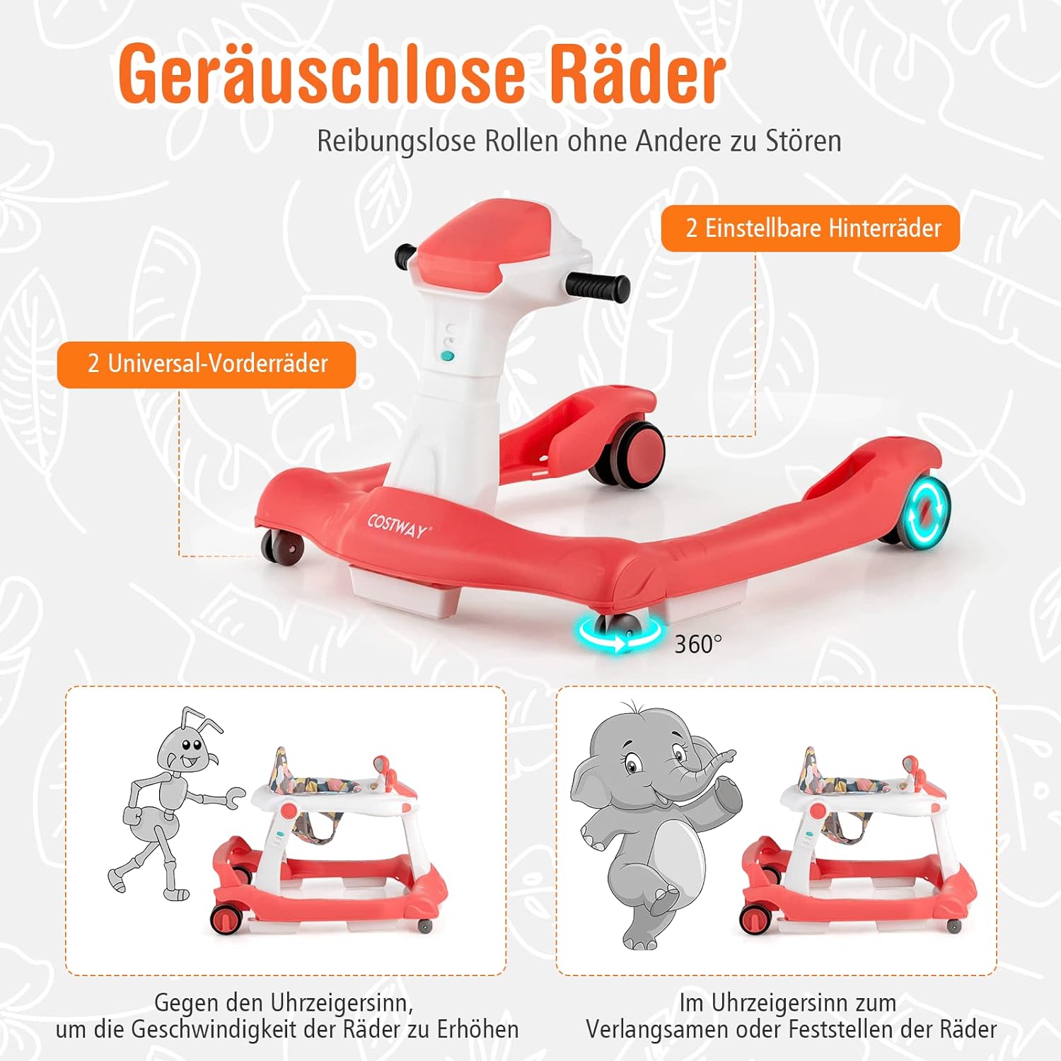 - 【Einstellbare Geschwindigkeit & einfache Installation】Der Lauflernwagen ist mit rutschfesten und leisen Reifen ausgestattet, die den Boden nicht zerkratzen, und das Hinterrad kann die Geschwindigkeit des Lauflernwagens einstellen. Die Installation des Kinderwagens ist sehr arbeitssparend, einfach den Knopf drücken, kein Werkzeug erforderlich.