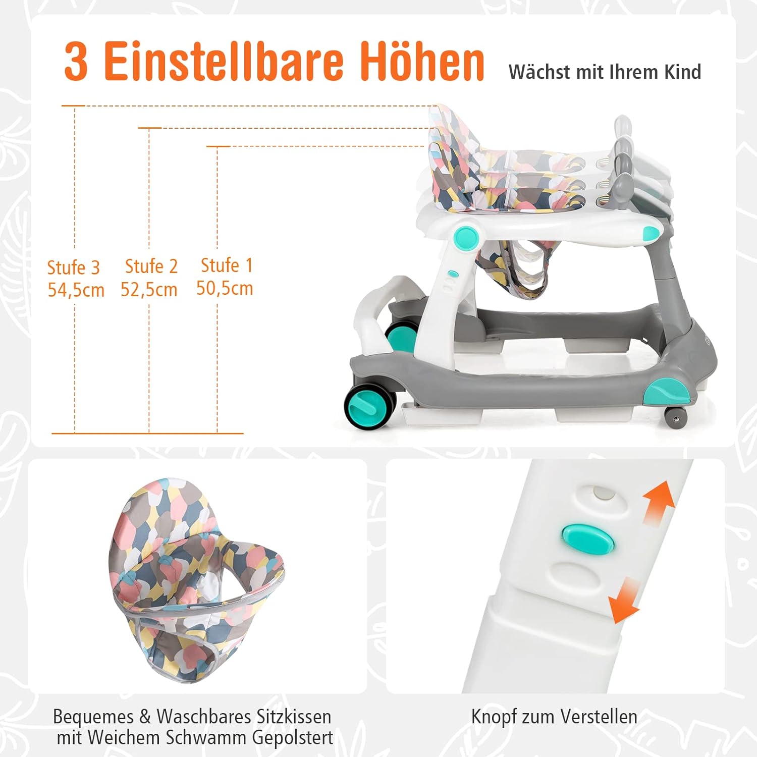 - 【2 in 1 Lauflernhilfe】 Diese Lauflernhilfe hat ein 2 in 1 Design und kann als Lauflernhilfe mit Sitz und Schieblauflernhilfe verwendet werden. Und die Höhe ist in drei Stufen verstellbar, geeignet für Babys im Alter von 6 bis 18 Monaten, und kann