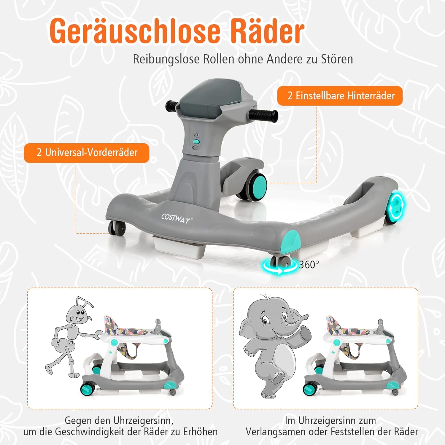 - 【Einstellbare Geschwindigkeit & einfache Installation】Der Lauflernwagen ist mit rutschfesten und leisen Reifen ausgestattet, die den Boden nicht zerkratzen, und das Hinterrad kann die Geschwindigkeit des Lauflernwagens einstellen. Die Installation