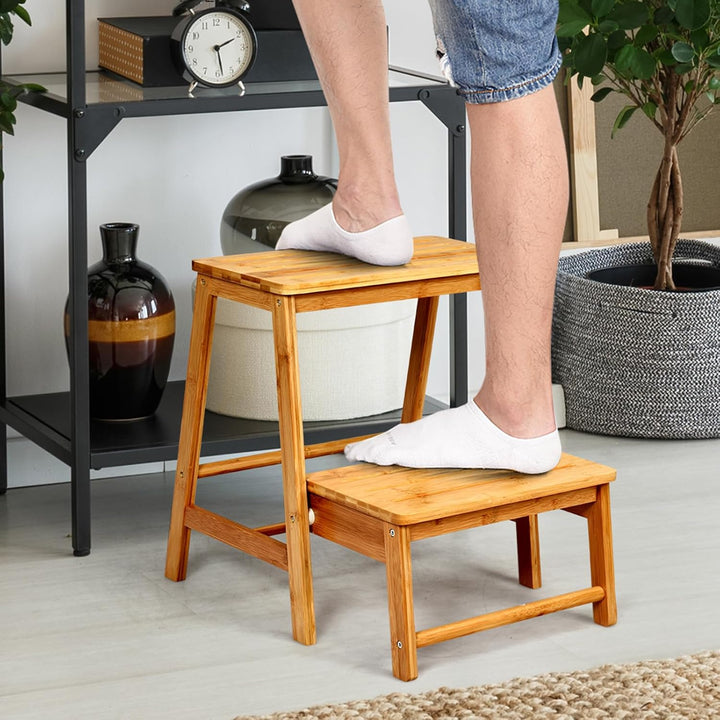 • 【Stabile Bambus-Konstruktion】Durch seine Herstellung aus hochwertigem Bambusholz ist dieser Tritthocker stabil, strapazierfähig und bietet eine hohe Tragkraft von bis zu 100 kg, sodass Sie und Ihre Familie ihn lange Zeit nutzen können. Diese gute Qualität gewährleistet Ihnen eine hohe Sicherheit bei der Verwendung und ermöglicht es Ihnen, ohne Bedenken auf diesem Hocker zu sitzen oder zu stehen.