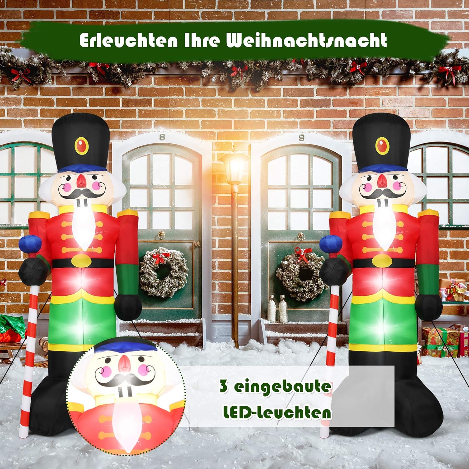 - 【Geeignet für Indoor und Outdoor】Dieser Weihnachtssoldat ist 2,4 m gross und mit Seilen und Pfählen zur Befestigung am Boden ausgestattet. Ausserdem können Sie ihn auch im Wohnzimmer aufstellen. Abgesehen davon sorgen der wasserdichte Polyester