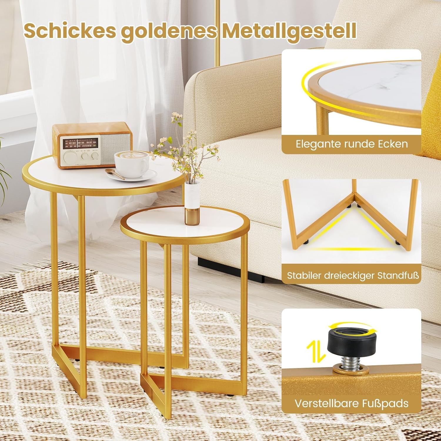 - 【Platzsparender Satz-Couchtisch】 Sie können die Satztische so anordnen, wie Sie möchten. Sie ineinander zu verschachteln ist eine gute Möglichkeit, Platz zu sparen. Und es ist auch eine gute Wahl, sie separat zu verwenden, um ihre Funktion