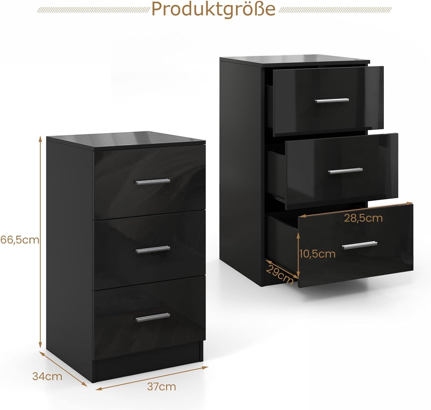 - 【Stilvolle und Zeitgemässe Optik】Dieser Nachtschrank erhält durch seine Lackierung eine moderne und glänzende Optik, die durch die glatten, schlichten Griffe ideal komplementiert wird.