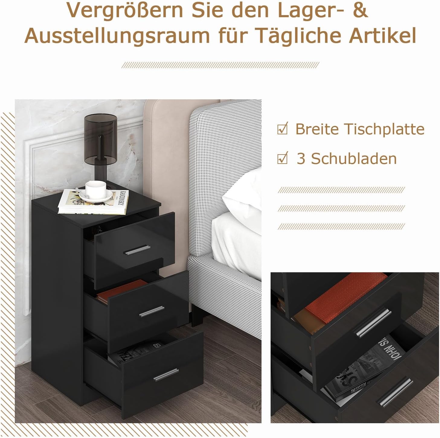 - 【Mit drei Schubladen】Drei leichtgängige Schubladen bieten reichlich Stauraum für zum Beispiel Ihrer Nachtlektüre, der Lesebrille oder ähnlichen Utensilien.