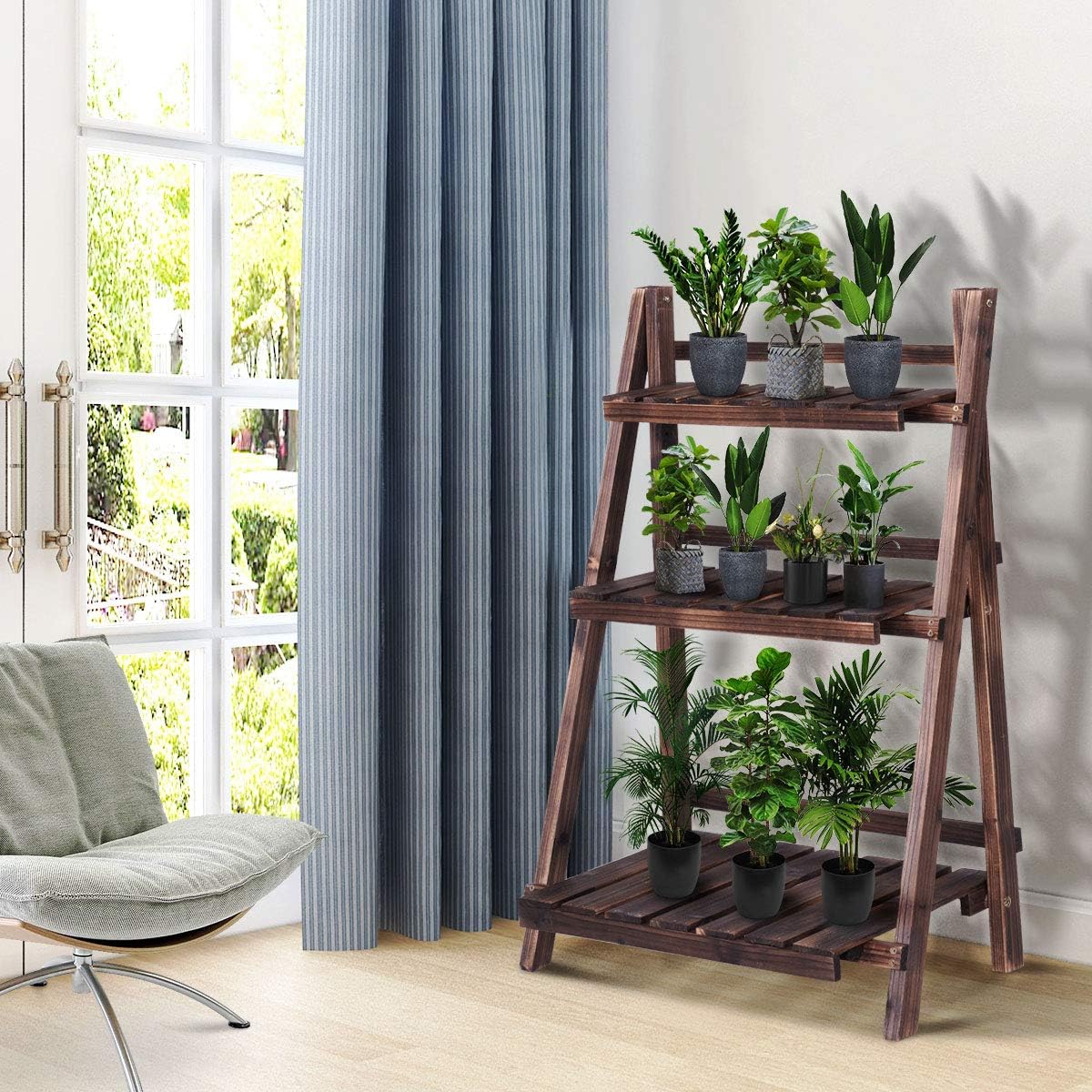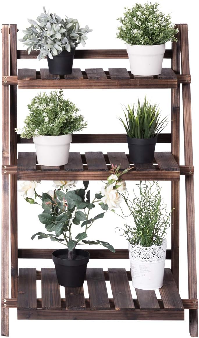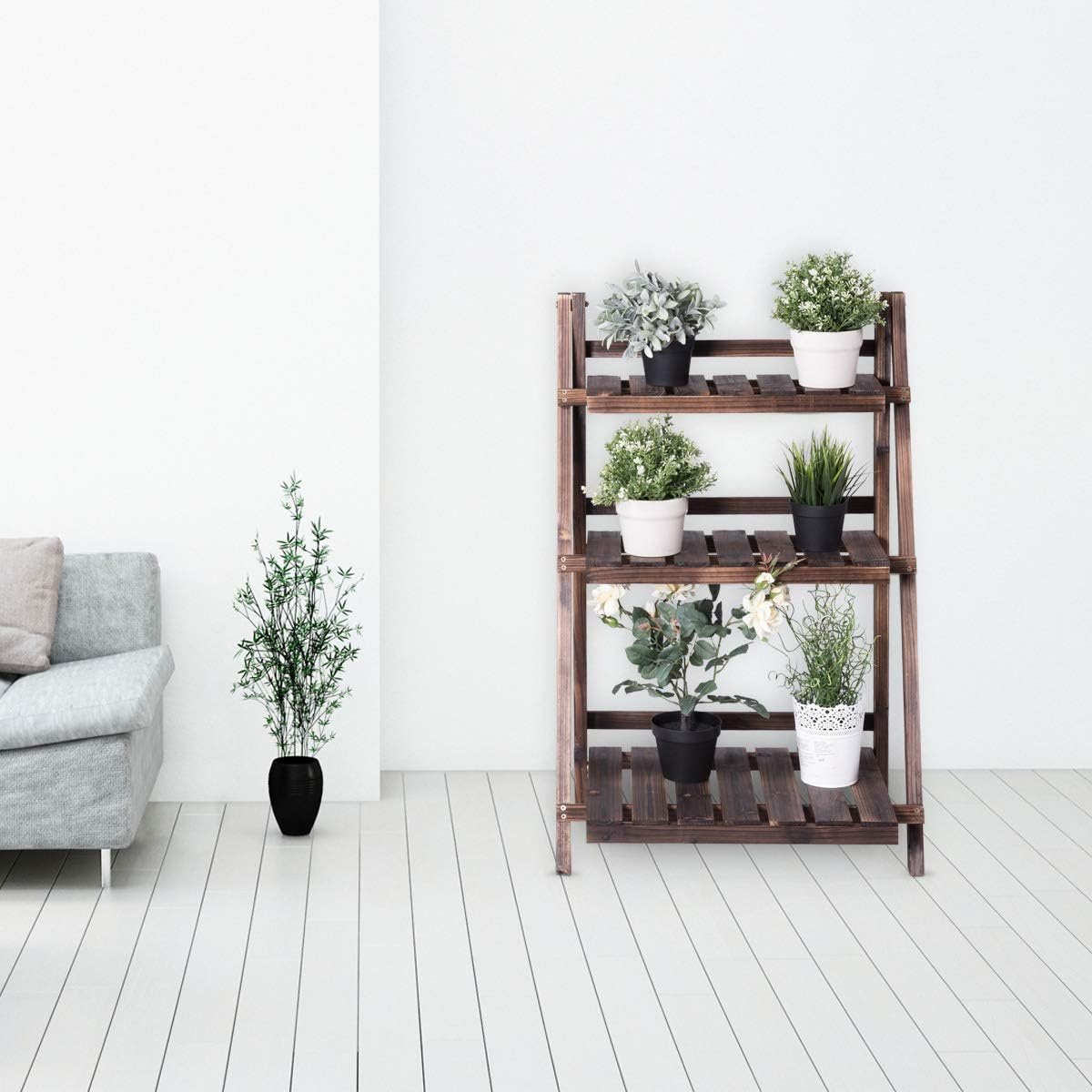 - 🌼【Karbonisiertes Holzmaterial】Das aus hochwertigem und karbonisiertem Tannenholz gefertigte Pflanzenregal verfügt über robuste Stützen, die eine Belastbarkeit jeder Ebene von bis zu 15 kg sorgen, für optimale Sicherheit.