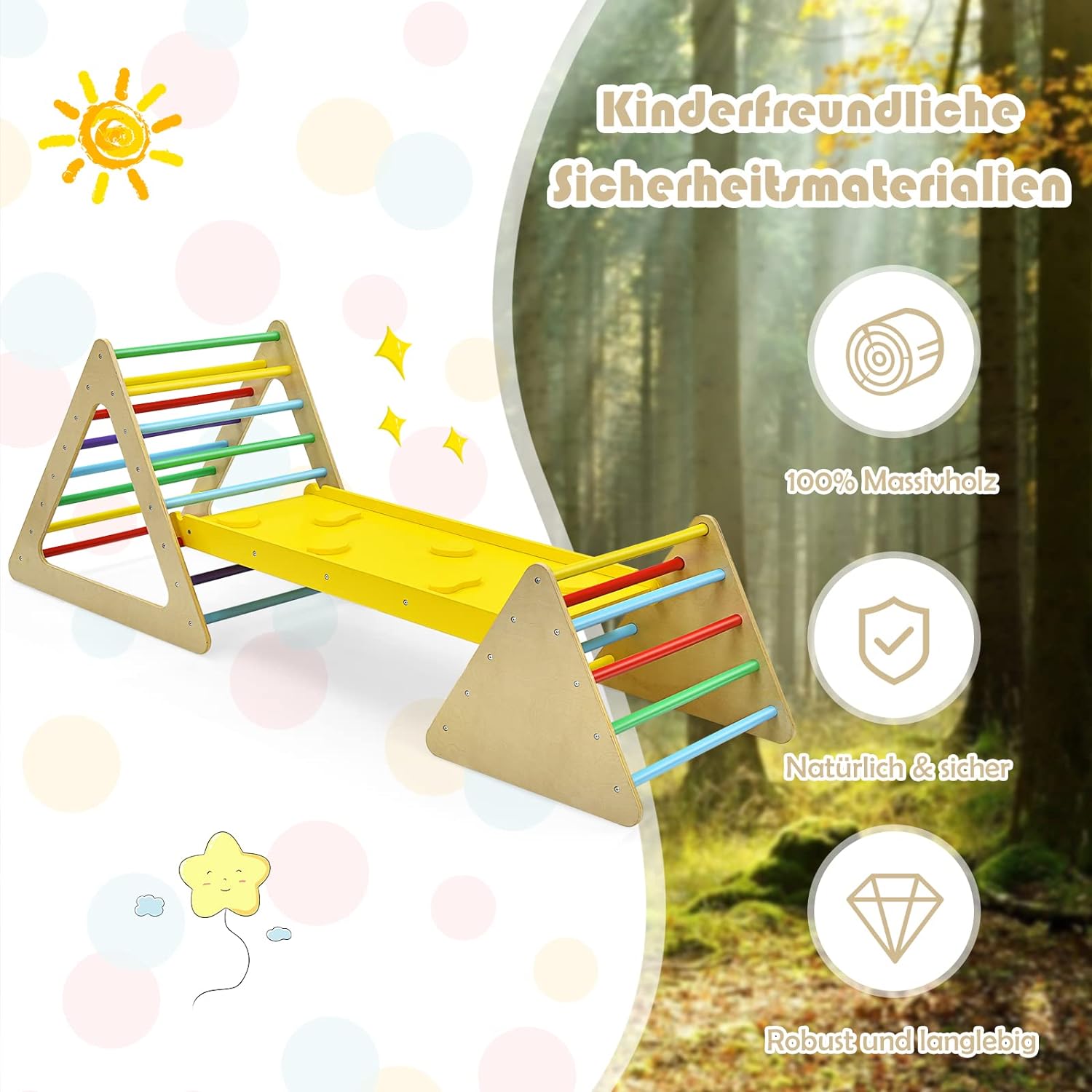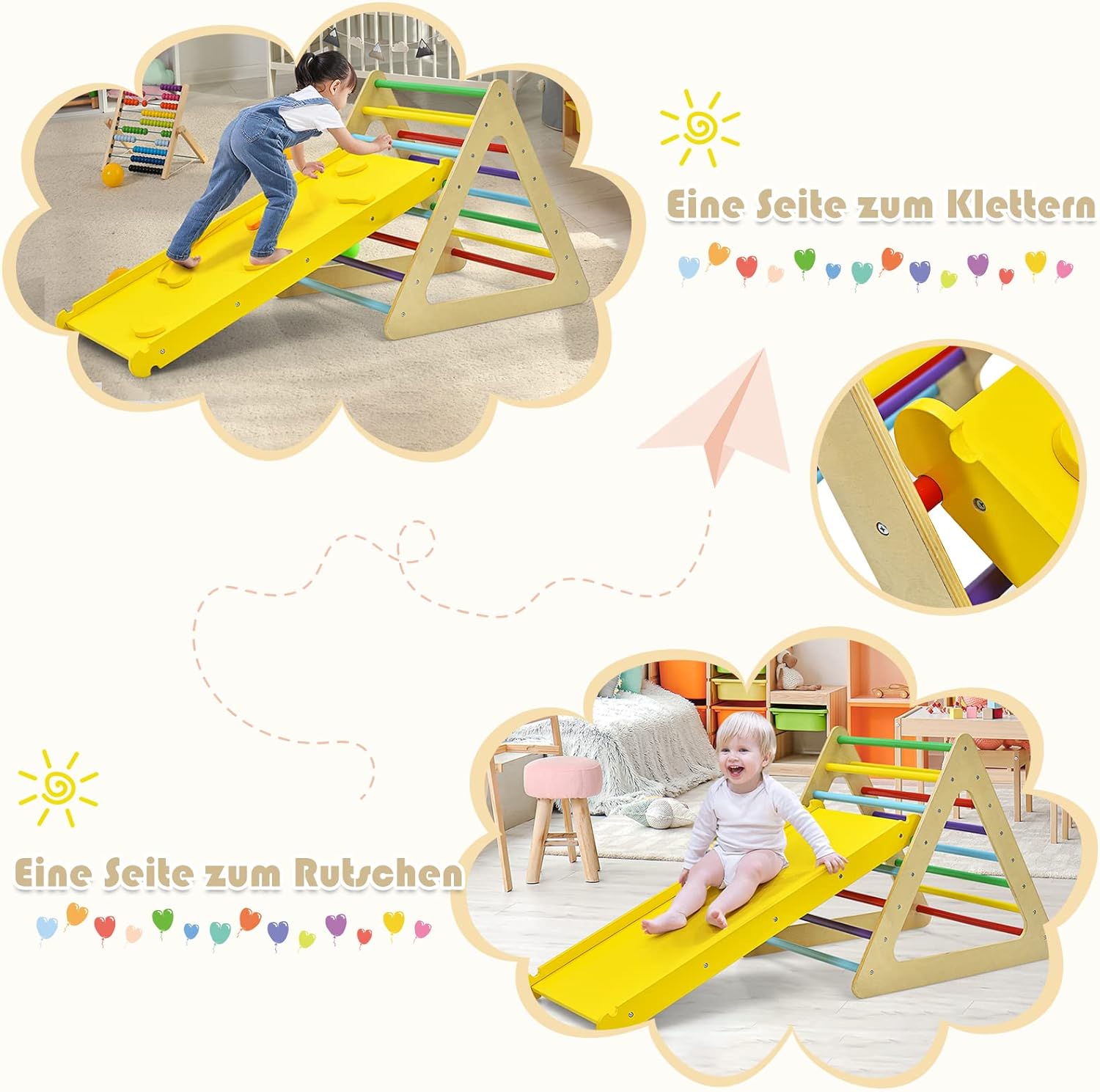 - 【3 in 1 Kletterset】Dieses Kletterset enthält 2 unterschiedlich grosse dreieckige Leitern und 1 Rampe zum Klettern und Rutschen, wodurch die Balance, Motorik und der Mut gefördert, sowie verschiedene Bedürfnisse erfüllt werden.