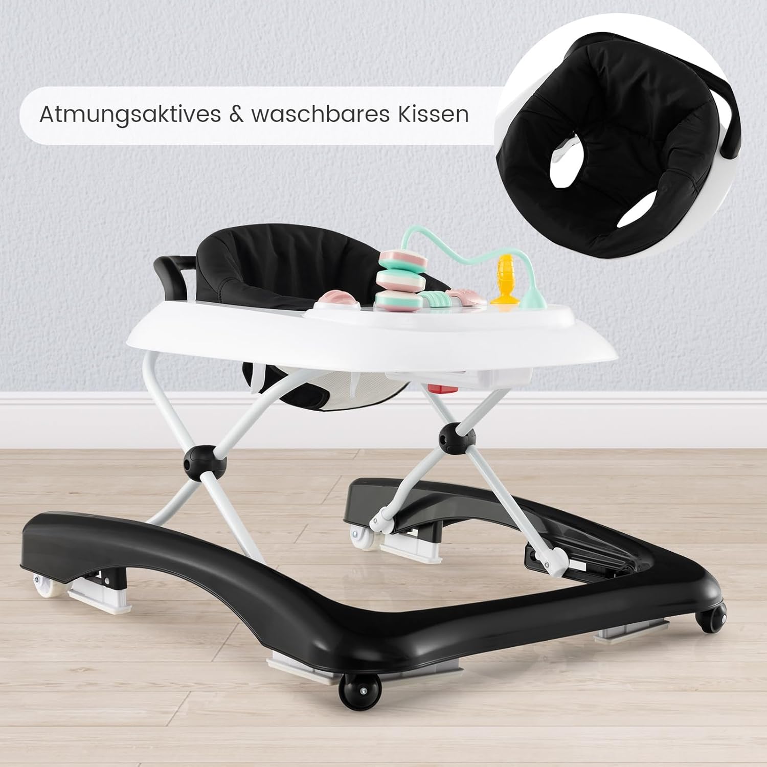 - đăBequemer SitzăDiese Laufhilfe prioritisiert den Komfort Ihres Babys mit einem weichen, atmungsaktiven und waschbaren Sitzkissen. Zusammen mit einer ergonomischen RĂŒckenlehne fĂŒr die richtige UnterstĂŒtzung der WirbelsĂ€ule sorgt es fĂŒr eine