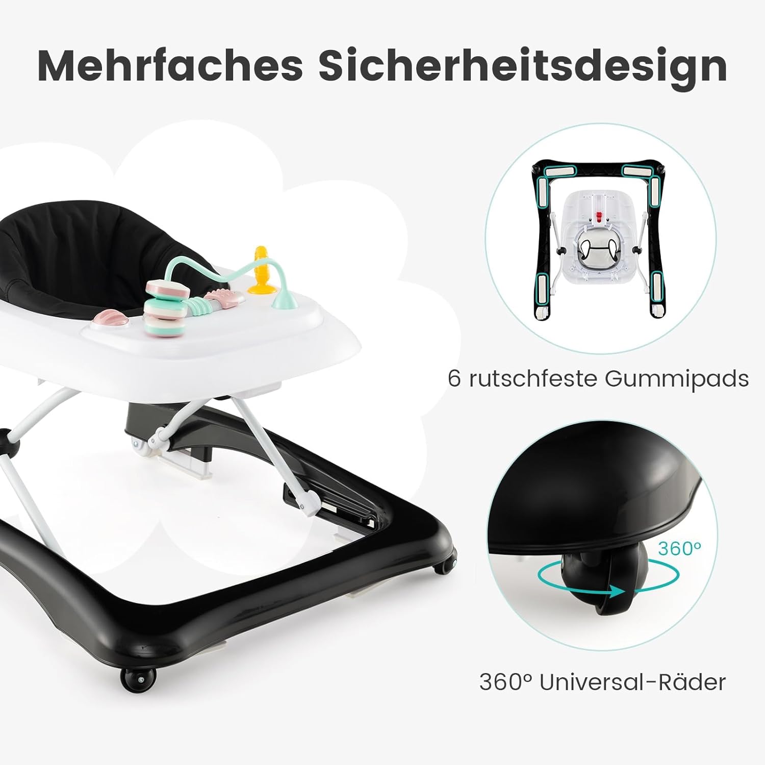 - đă3-stufige HöhenverstellungăDer faltbare Baby Walker kann sich mit 3 Höhenpositionen an das Wachstum Ihres Kindes anpassen, was vom ersten Schritt bis zum sicheren Cruisen optimalen Halt bietet und O-Beine vermeidet, wĂ€hrend sie die Welt