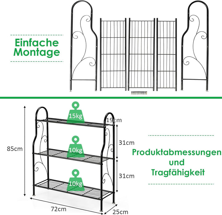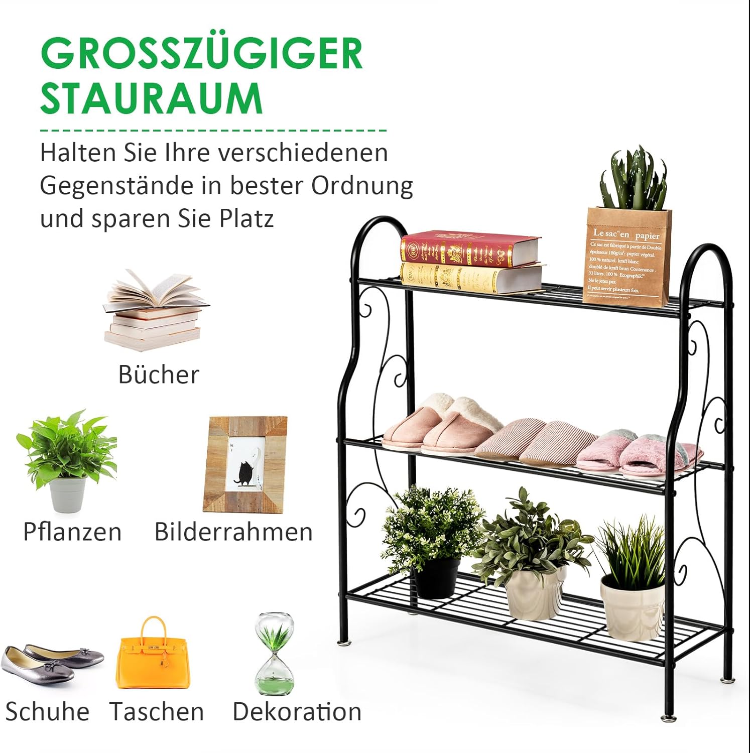 • đŸŒ±ă€Multifunktionaler Heimorganizer】 Dieses 3-Ebenen-Metallregal eignet sich zum Halten verschiedener GegenstĂ€nde wie Blumentöpfe, GartengerĂ€te, BĂŒcher, Schuhe, HandtĂŒcher und andere kleine Dekorationen. Neben der Verwendung als