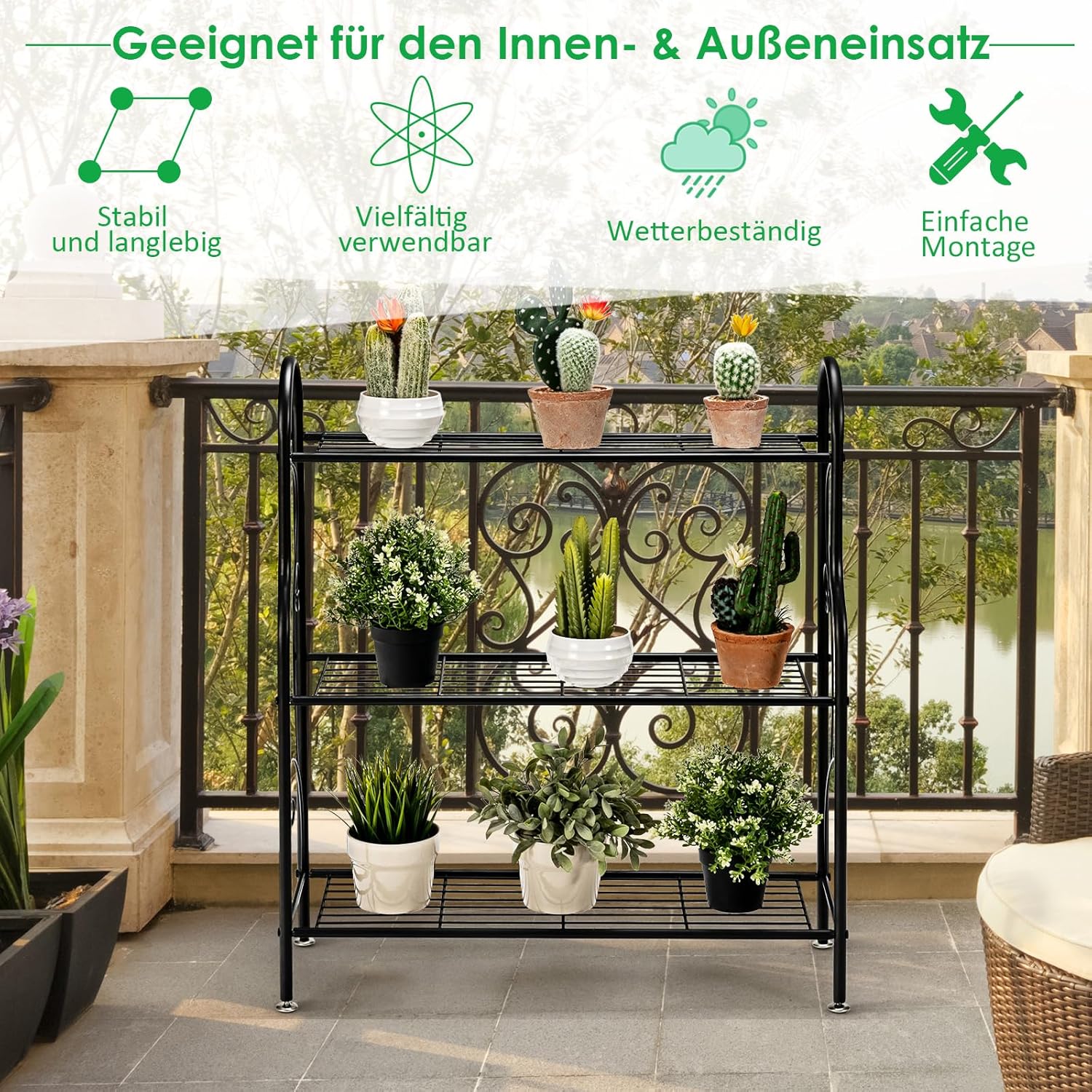 COSTWAY 3-stufige Metall Blumentreppe, PflanzenstÀnder Pflanzenregal Pflanzentreppe, Blumenregal bel