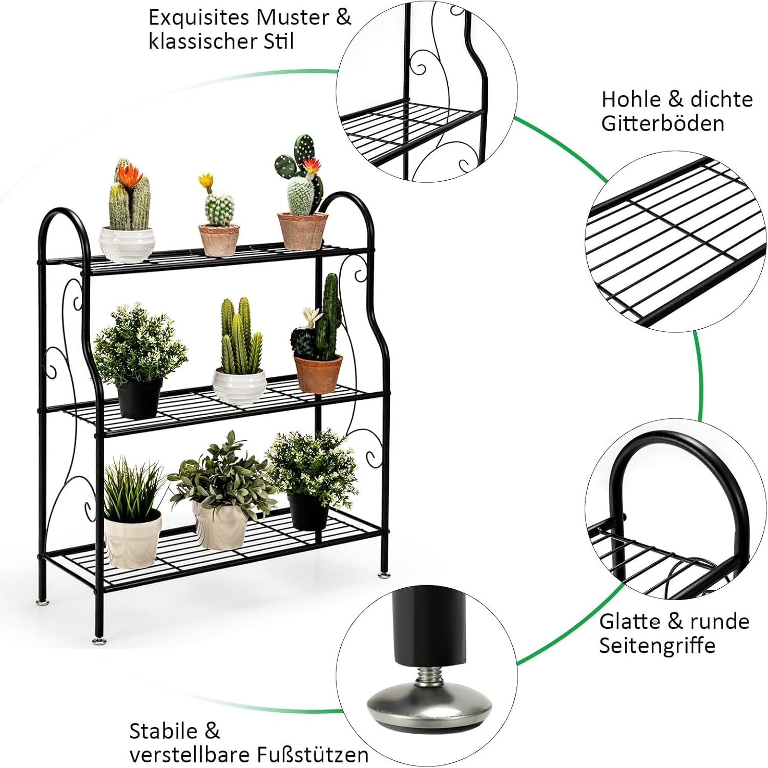 • đŸŒ±ă€Klassisches & Platzsparendes Design】 Mit zarten Blumenmustern, elegantem Schwarz-Finish und glĂ€nzender OberflĂ€che ist dieser 3-Ebenen-PflanzenstĂ€nder eine perfekte Dekoration, um Ihren Aussen- oder Innenbereich hervorzuheben. DarĂŒber hinaus