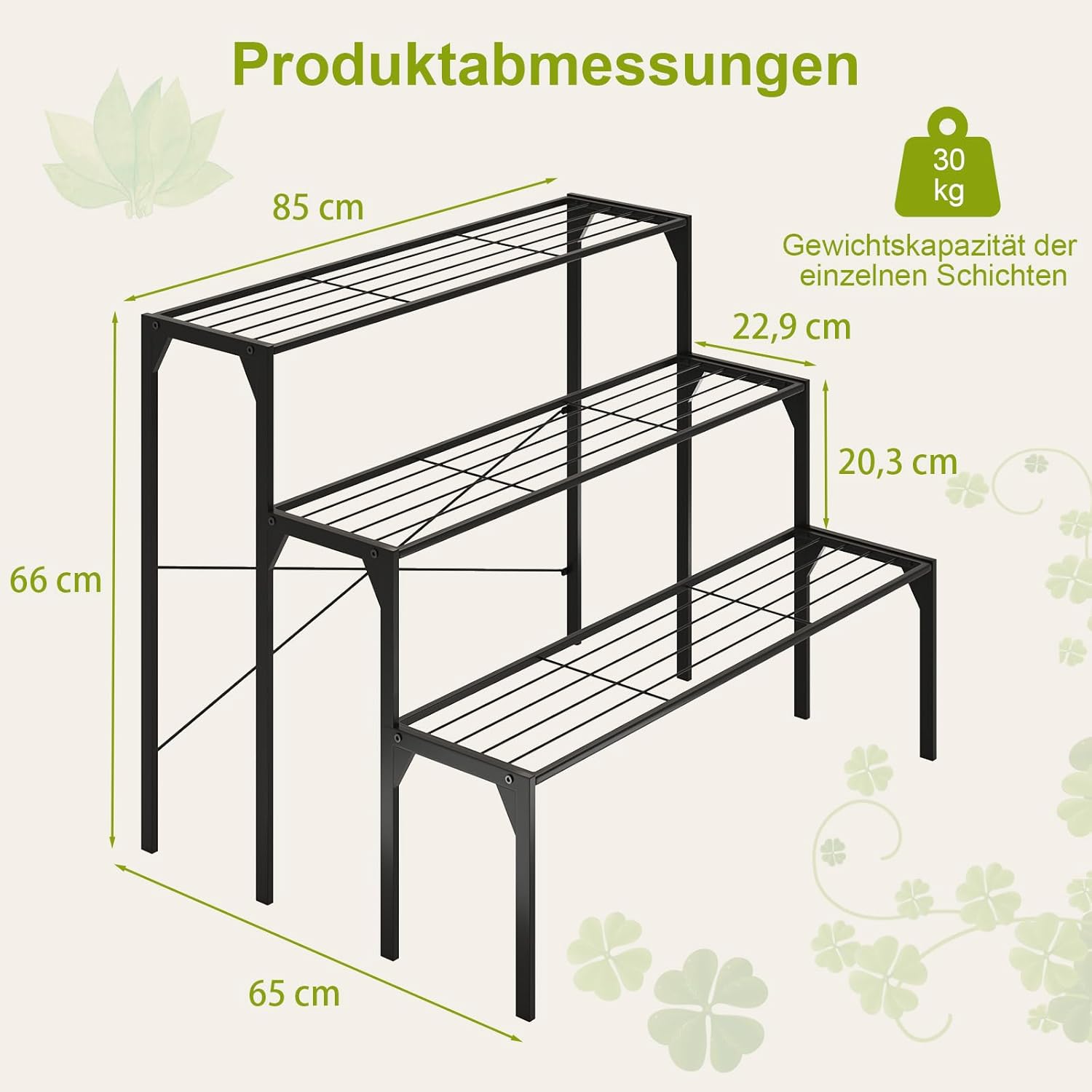 - đ±ă3-stufiges Pflanzenregal mit viel Platză Dieses dreistufige Regal bietet Ihnen viel Platz zur Aufbewahrung und PrĂ€sentation. Jede Ablage ist gerĂ€umig genug fĂŒr Pflanzen verschiedener Grössen und Formen. Durch das freistehende Design wird der Platz optimal genutzt, gleichzeitig wird insgesamt wenig BodenflĂ€che eingenommen.