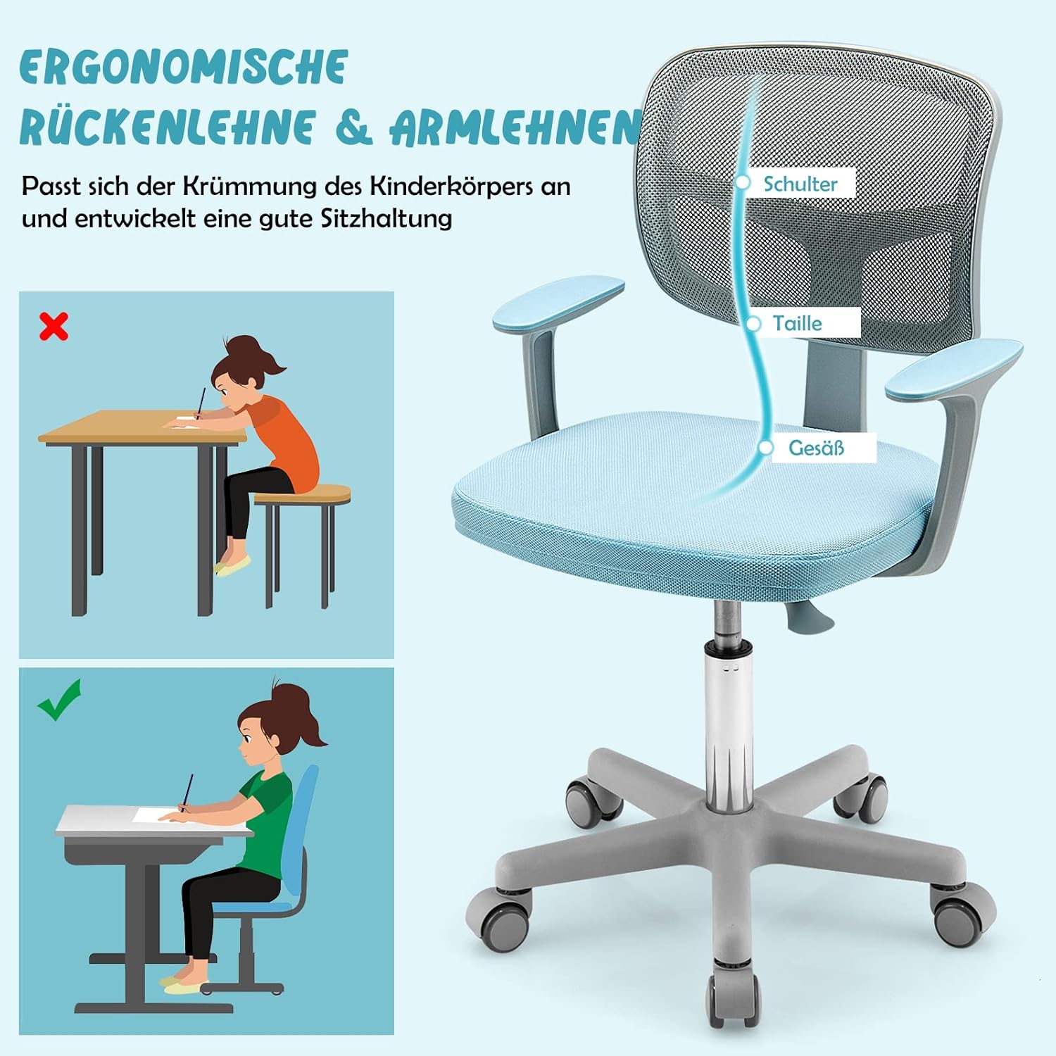 • 【Ergonomisches Design & Gute Haltung】Mit Y-förmiger Lordosenstütze und einem sehr bequemen Sitz ist dieser Kinderstuhl ideal, um Ihr Kind in der richtigen Sitzposition zu halten und Haltungsschäden vorzubeugen. Der gebogene Rücken und die