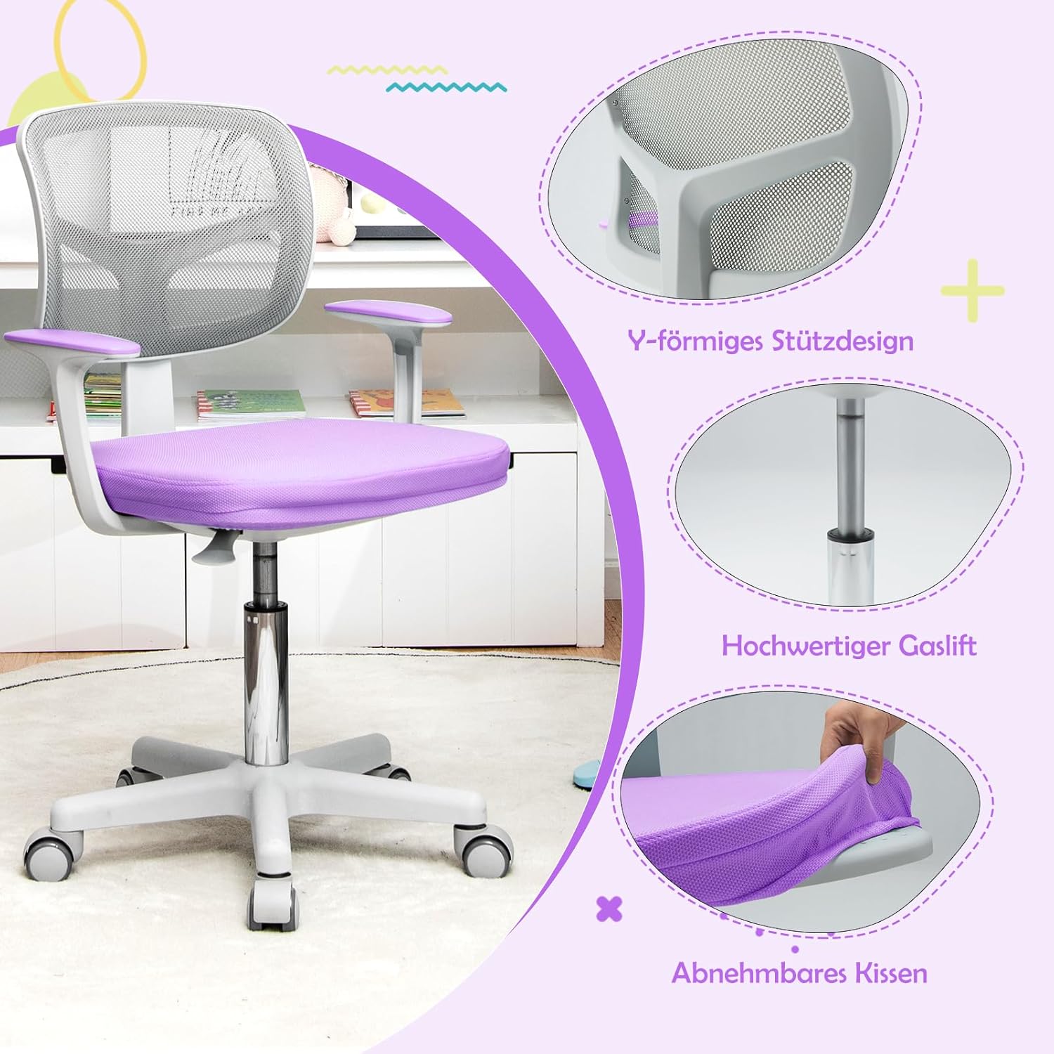 - 【Gepolsterter Netzstoff】Dank des mit elastischem Schaumstoff gepolsterten Sitzes ist der Stuhl eine komfortable Sitzgelegenheit für Kinder. Der Netzstoff ist atmungsaktiv und der Bezug kann zur einfachen Reinigung entfernt werden.