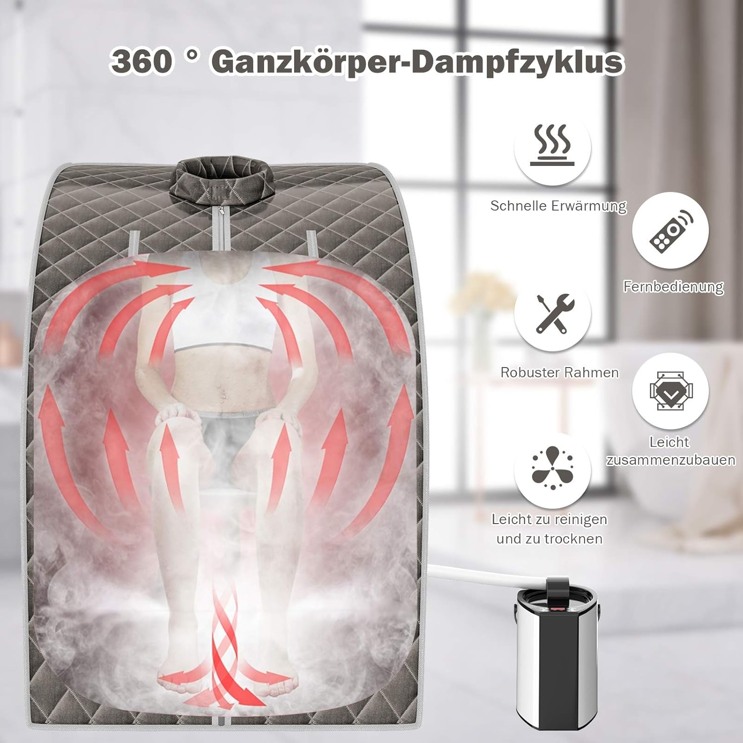 - 【Einfach zu montieren】Dank Anleitung ist das Dampfsaunazelt in wenigen Schritten aufgebaut, sodass Sie mehr Zeit haben, es zu geniessen. Da die Heimsauna tragbar ist, müssen Sie sich keine Sorgen machen, dass Sie sie mühevoll von einem Raum zum