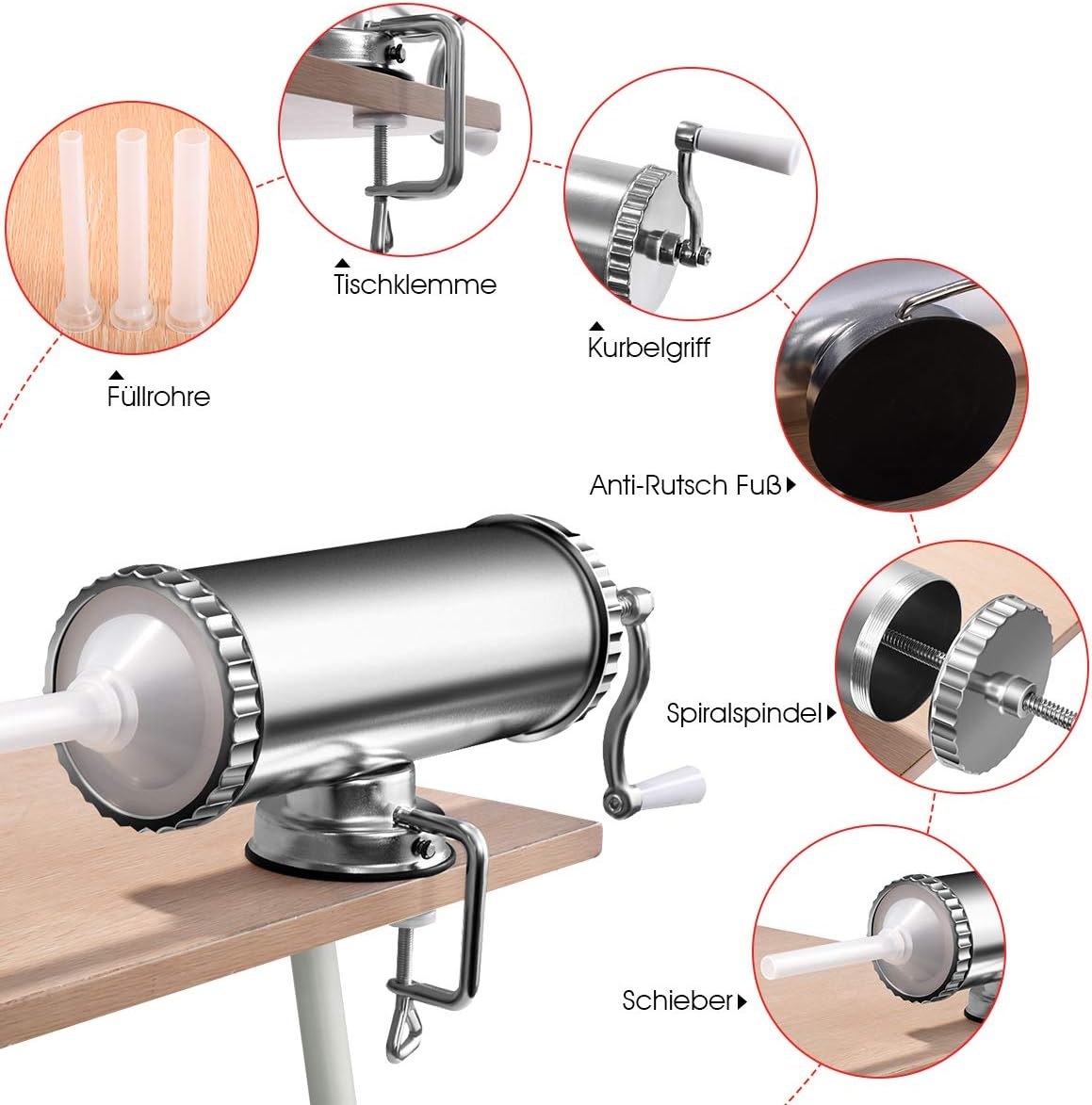 - 🍴【Starke Stabilität】Mit einer Tischklemme kann die Wurstmaschine fest am Tisch verankert werden, gewährleistet eine rutschfeste und angenehme Arbeit.