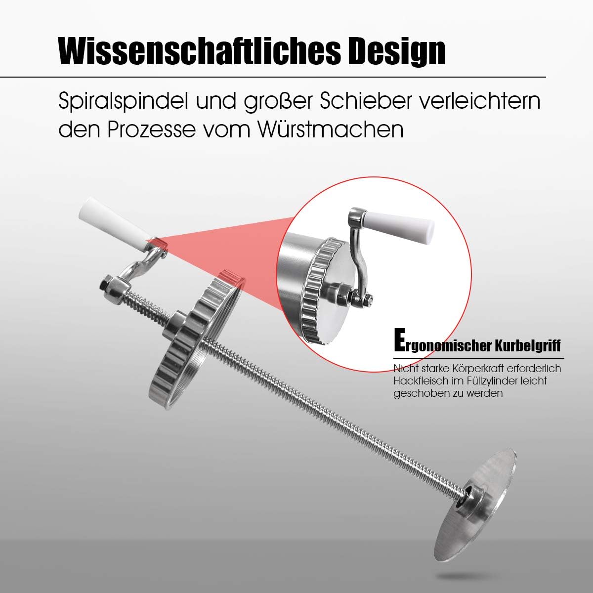 - 🍴【Ergonomisches Design】Die Wurstpresse verfügt über einen abziehbaren Handgriff, indem kann man Wurst einfach zu handhaben und nur wenige Kraft erforderlich.
