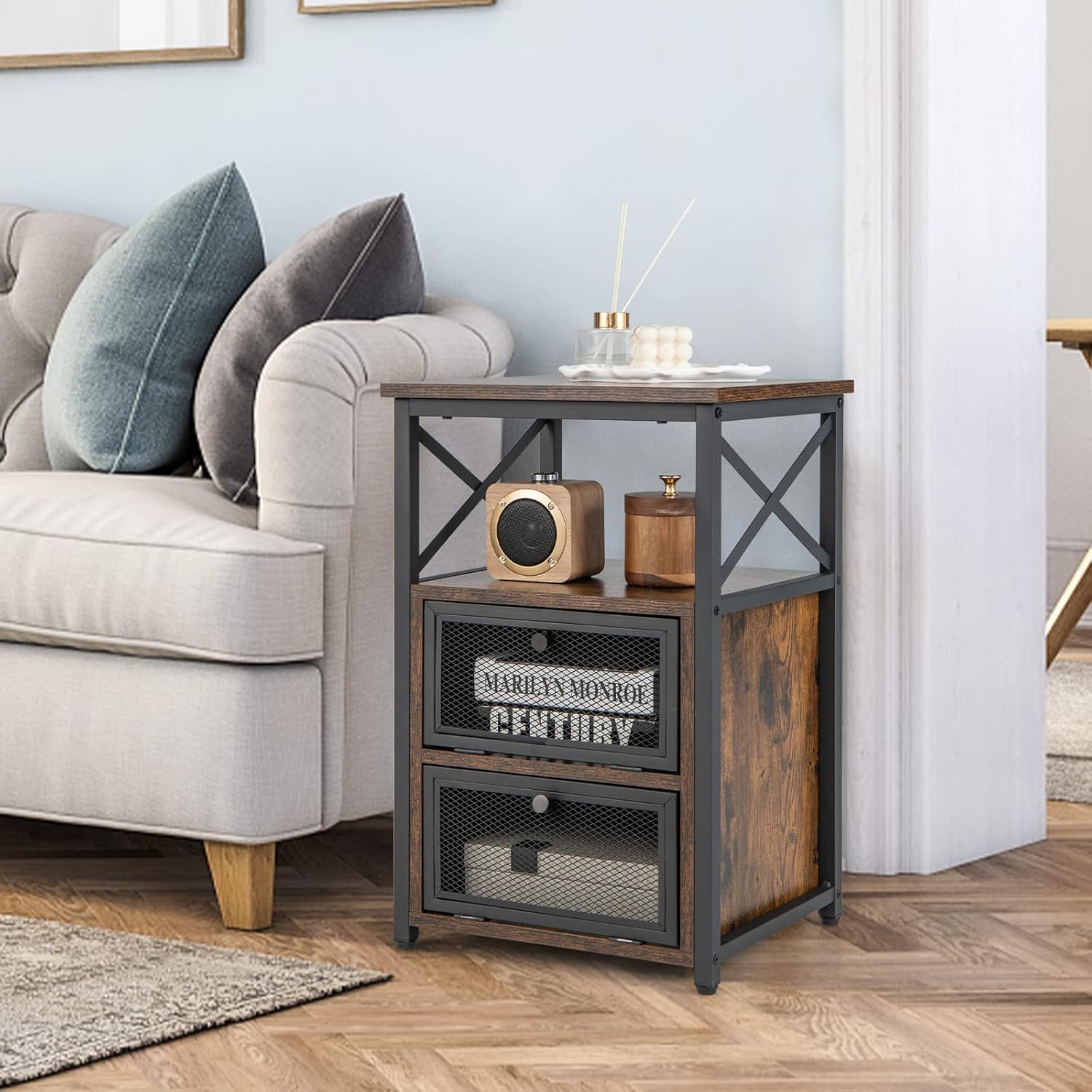 - 【Platzsparender und multifunktionaler Tisch】 Mit den Massen 60,5 x 40 x 35 cm ist dieser kompakte Beistelltisch eine perfekte Aufbewahrungslösung für kleine Räume wie Schlafsäle oder Flure. Sie können diesen multifunktionalen Beistelltisch auch