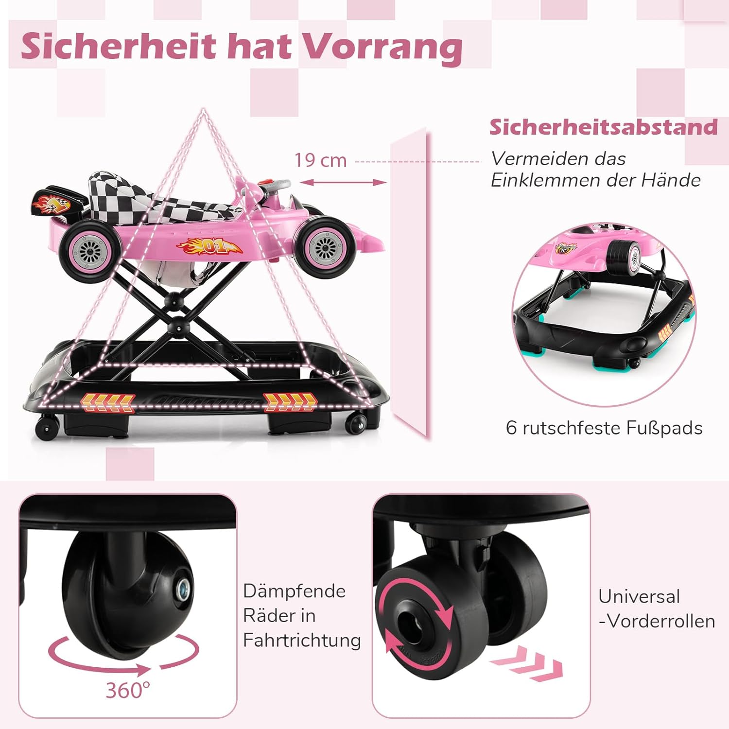 - đăSicherheit steht an erster StelleăDiese Gehhilfe fĂŒr Baby ab 6 Monaten hat einen Sicherheitsabstand von 19 cm, damit die HĂ€nde nicht stecken bleiben. Der stabile Rahmen und 6 rutschfeste Fusspolster am Boden sorgen fĂŒr StabilitĂ€t und