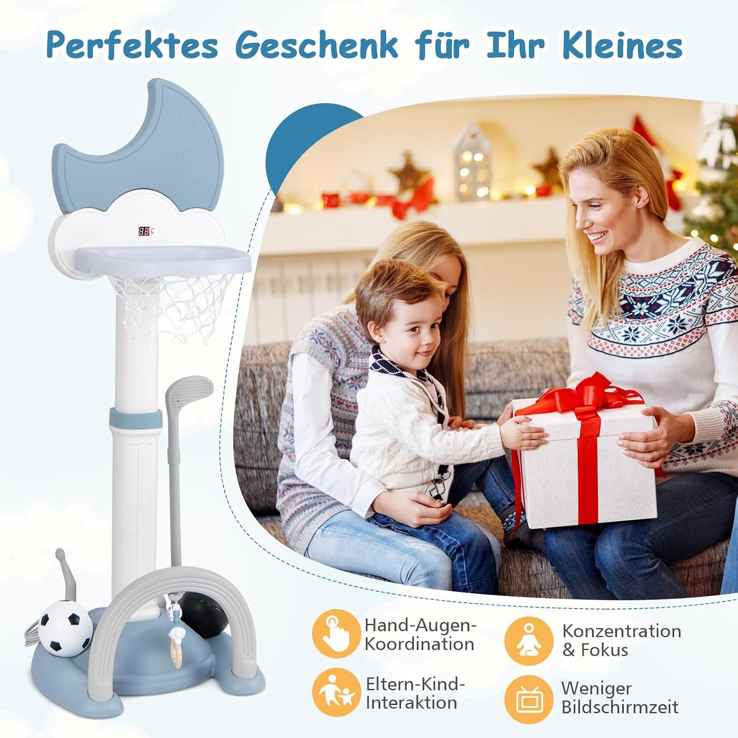 - 【4-in-1 Aktivitätszentrum】Dieses niedliche Aktivitätszentrum bietet Unterhaltung in vier beliebten Spielen: Basketball, Fussball, Golf und Ringwurf. Dieser Kinder Spielplatz spart Platz und sorgt für abwechslungsreiche Unterhaltung für Kinder.