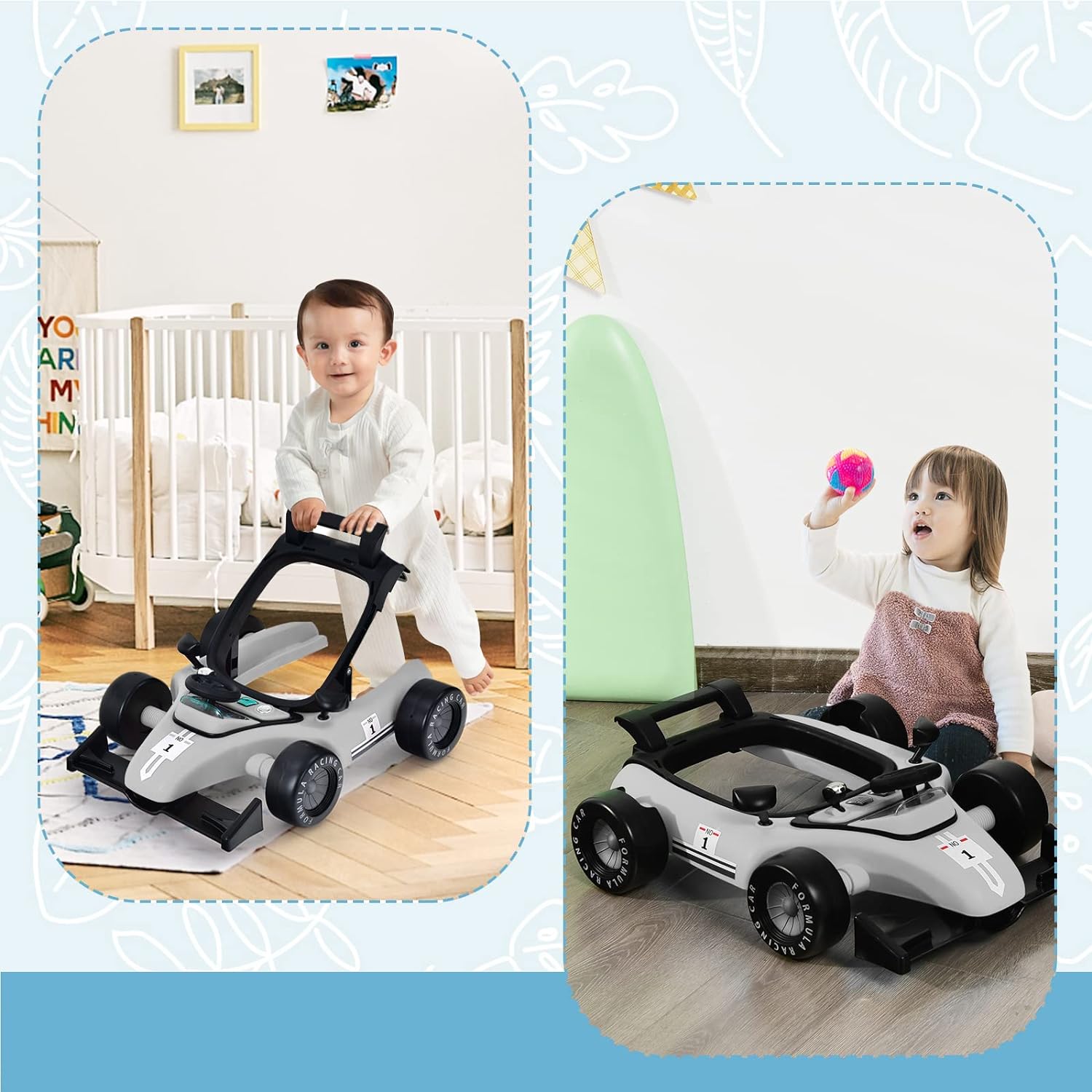 - 🚘【4 in 1 Multifunktionen】Die Lauflernhilfe hat ein 4 in 1 Design, nämlich Lauflernmodus, Push-Behind-Modus, Schiebewagenmodus und Babykart-Modus, durch die verschiedenste Bedürfnisse der Kinder erfüllt werden können. Sie eignet sich für