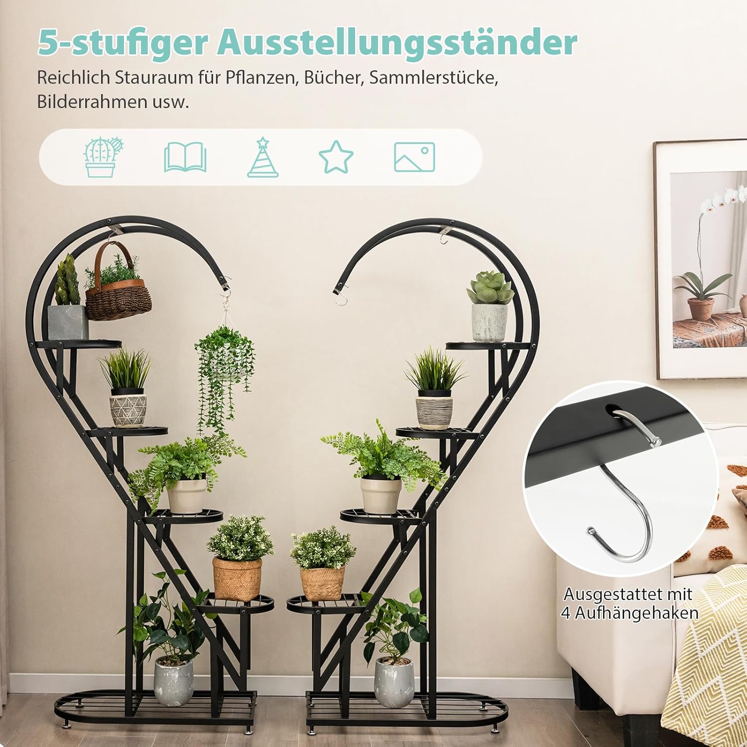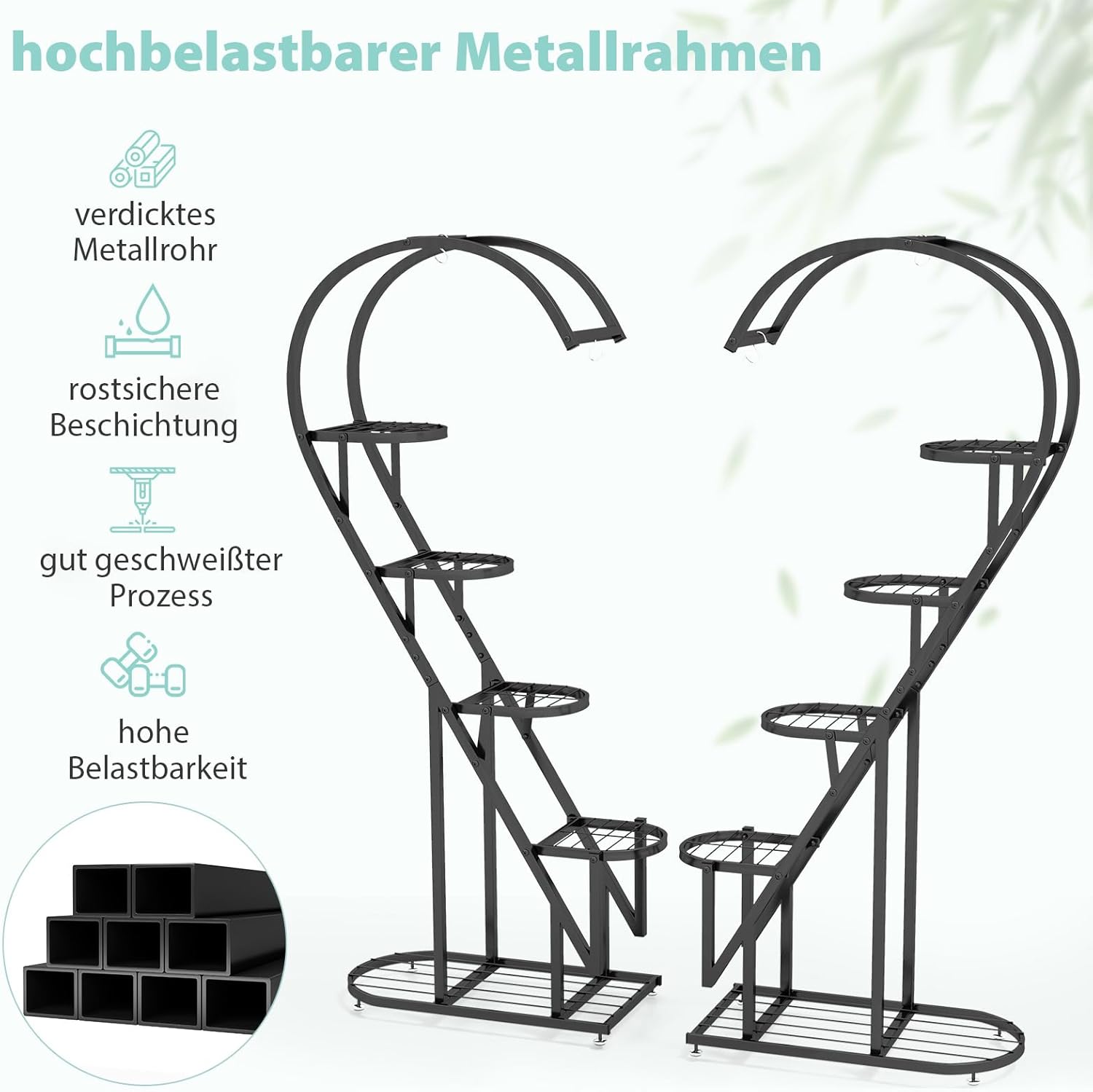 - ❤️【2er-Pack für mehr Möglichkeiten】 Der Pflanzenständer besteht aus einem Paar symmetrischer Ständer, die einzeln verwendet oder kombiniert werden können, um ein optisch beeindruckendes herzförmiges Arrangement zu schaffen. Sie haben die