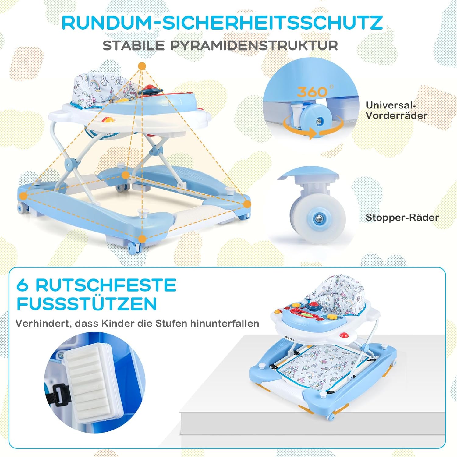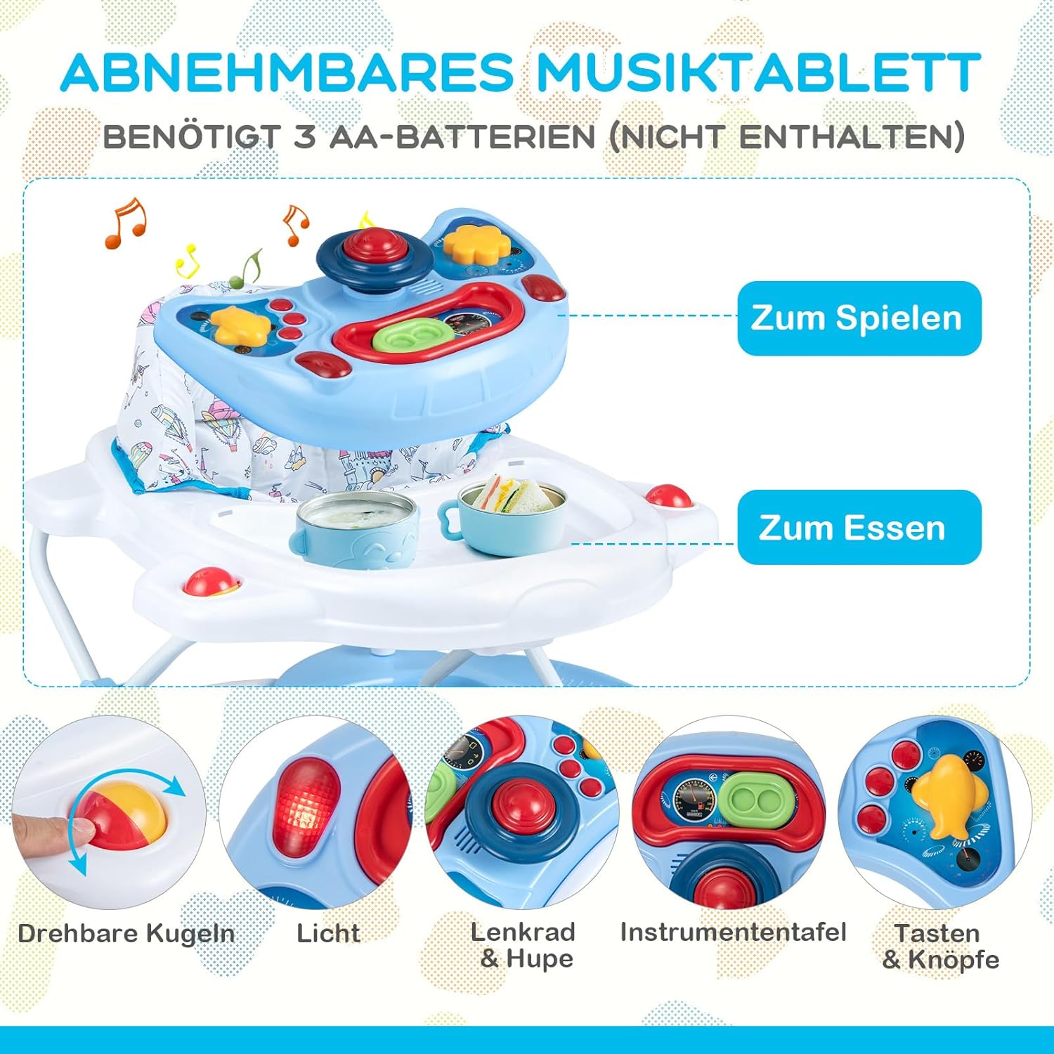 - đ€ăAbnehmbares MusiktablettăMit Drehkugeln, Lichtern, Lenkrad und Hupe, Instrumententafel, SchlĂŒsseln und Knöpfen verleiht das Musiktablett dem Lauferlebnis ein Element des Spasses. Ausserdem macht sein abnehmbares Design diesen Laufwagen fĂŒr