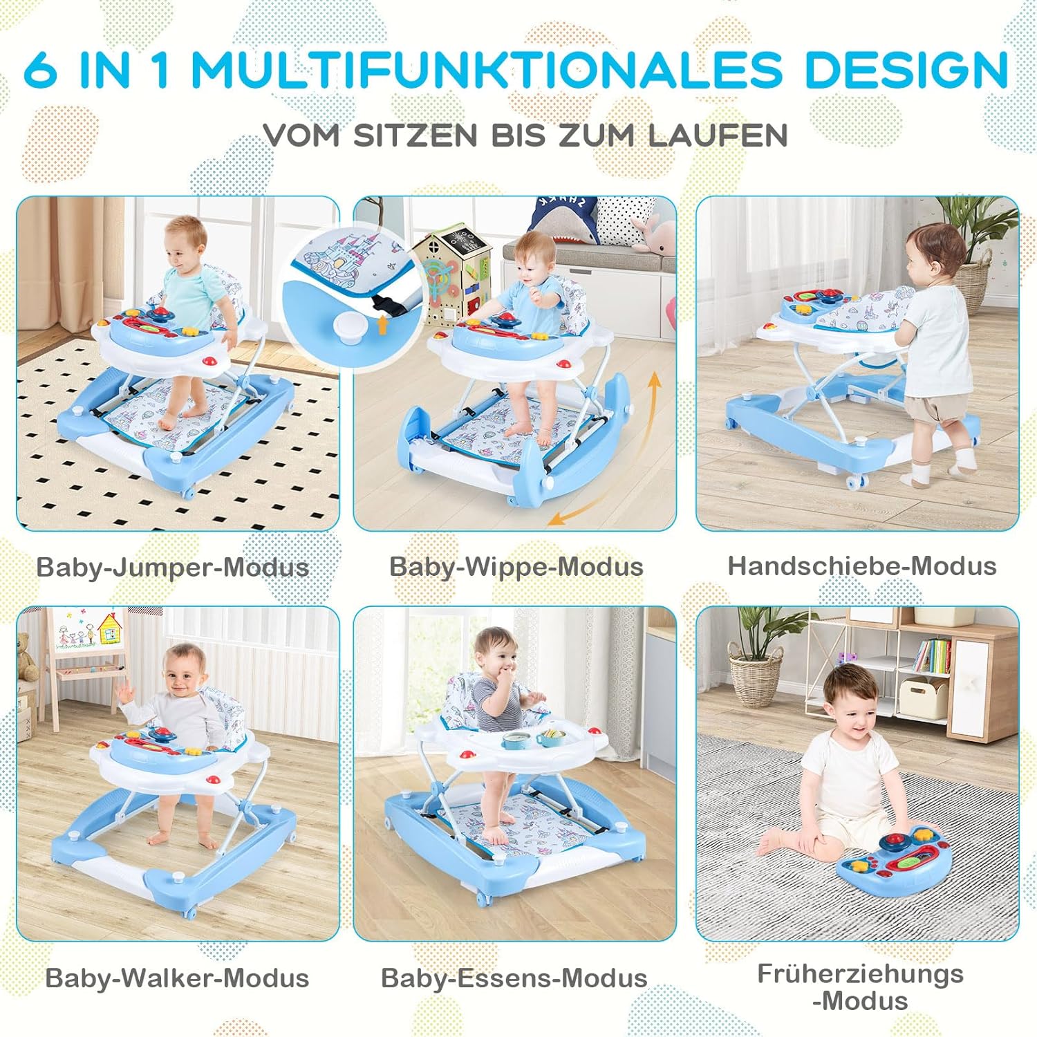 - đ€ă6-in-1-MultifunktionsdesignăDieses Baby AktivitĂ€tszentrum bietet 6 verschiedene Modi: Wippe, Handschieber, Jumper, Lauflernhilfe, Essen und FrĂŒherziehung. Damit ist es eine vielseitige Investition fĂŒr die frĂŒhe Entwicklung Ihre Kinder ab 6