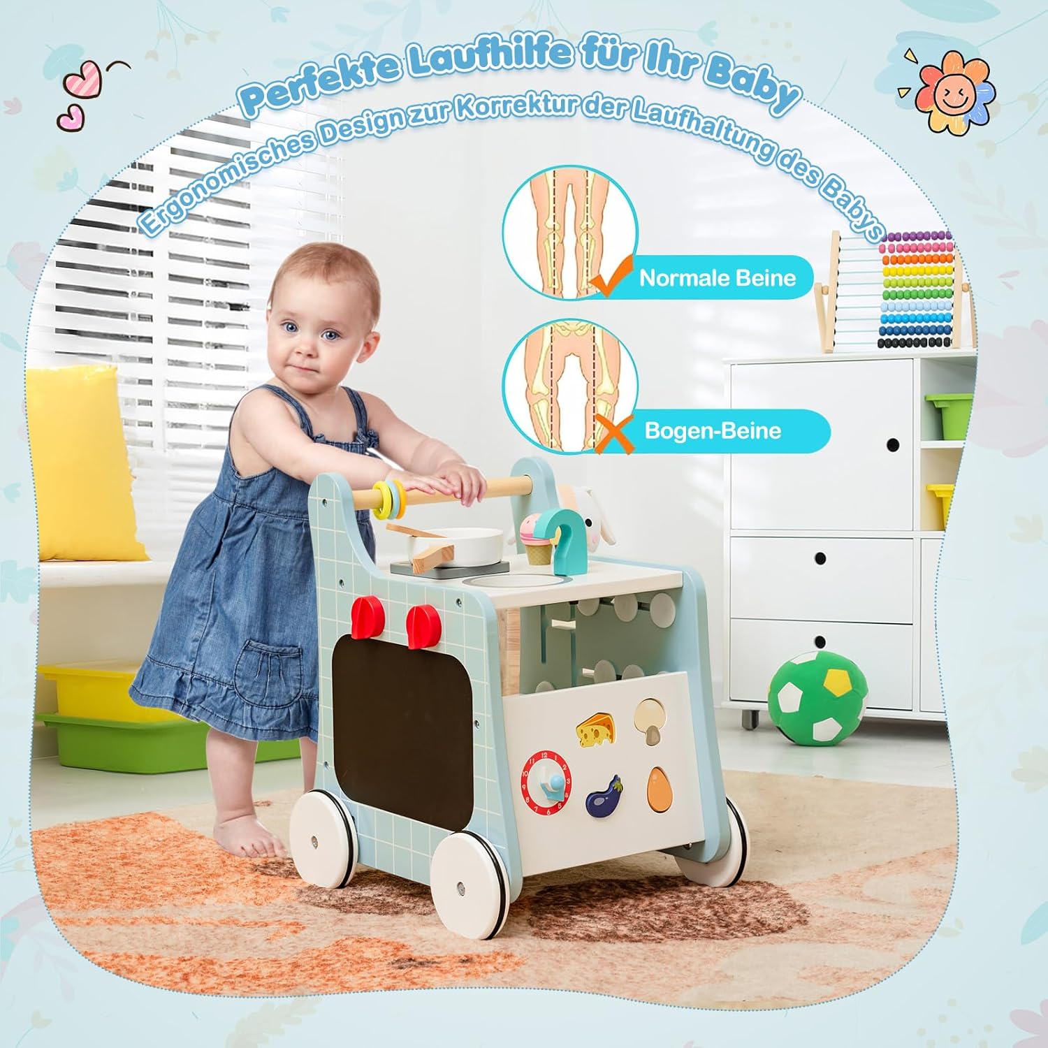 - 🥘【Tolles Geschenk】Dieser hölzerne Lauflernwagen mit integrierter Spielküche ist ein tolles Geschenk für Kinder ab 12 Monaten. Bei abwechslungsreichen Spielen können Kinder ihre Motorik, Fantasie & Kreativität, Hand- & Koordinationsfähigkeit