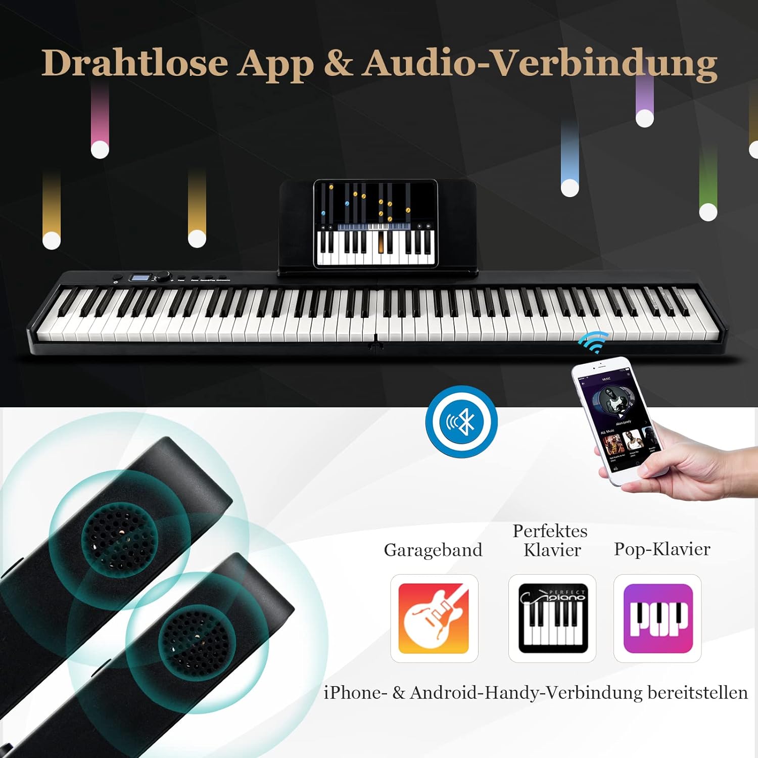 - 【Multifunktionale Klaviertastatur】Unser elektrisches Keyboard mit 2 Stereo-Lautsprechern kann einen Klang von 128 Tönen, 128 Rhythmen, 20 Demos und 88 Keyboard-Percussions anzeigen. Ausserdem ist es mit Funktionen wie Sustain, Vibrato,