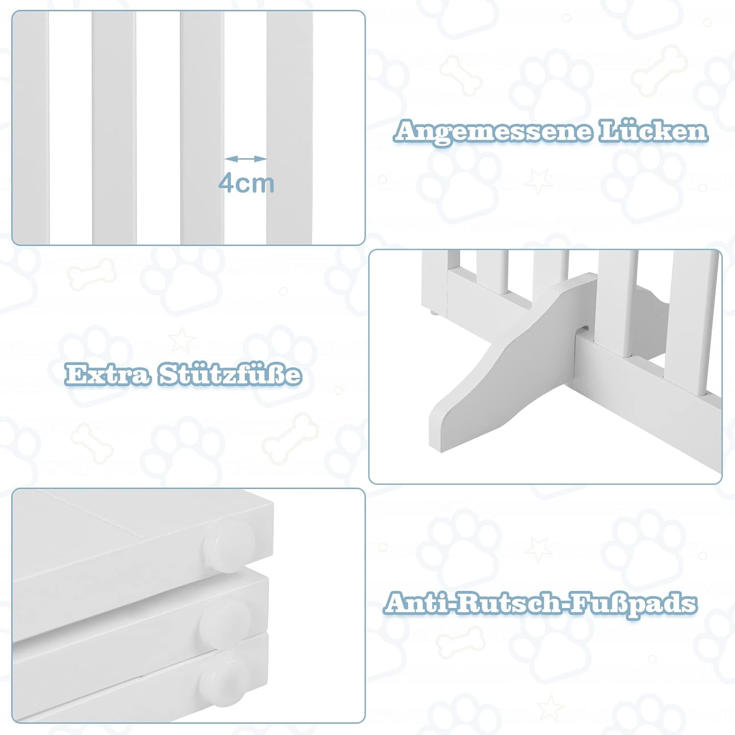 - 【Stabile Holzkonstruktion】Gefertigt aus hochwertigen Platten ist das Gatter robuster und langlebiger als andere Modelle, sowie sehr standfest. Die rutschfeste Unterseite sorgt für Stabilität und schützt den Boden vor Kratzern.