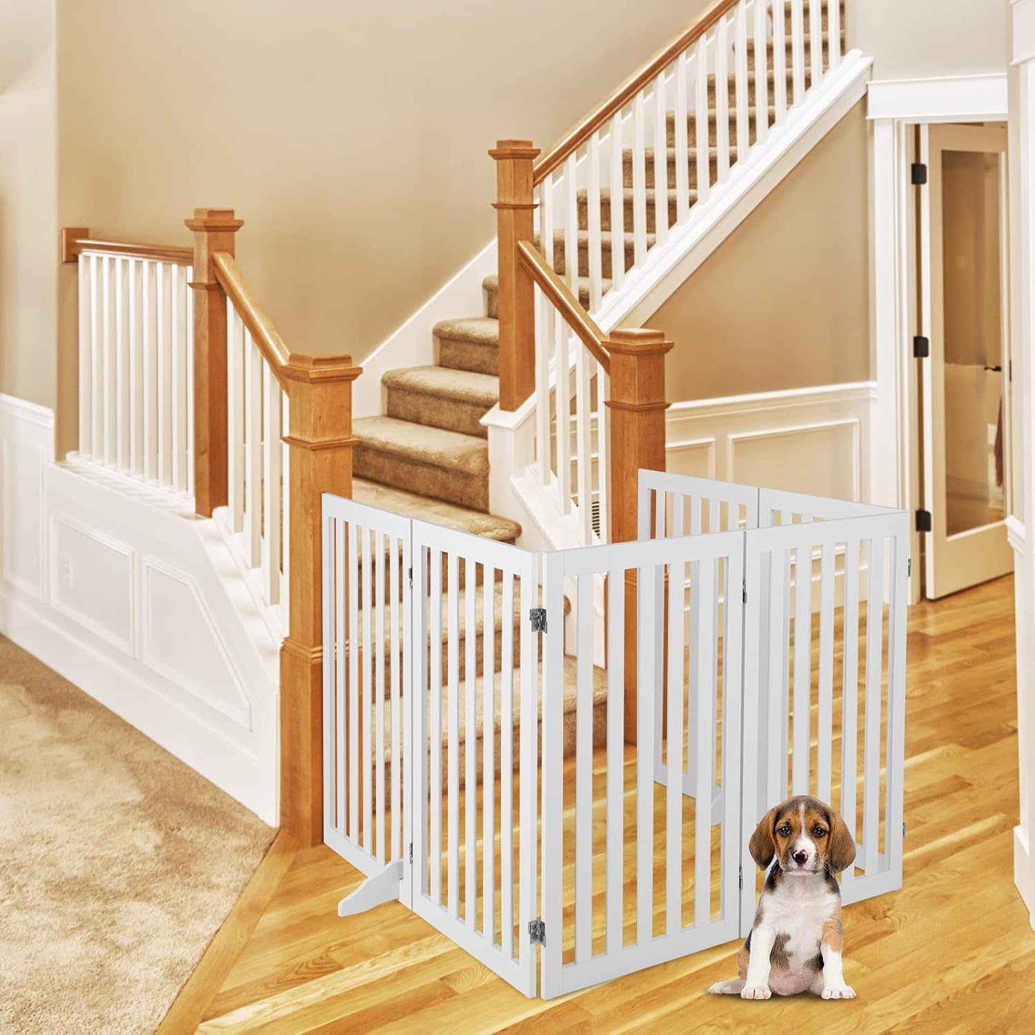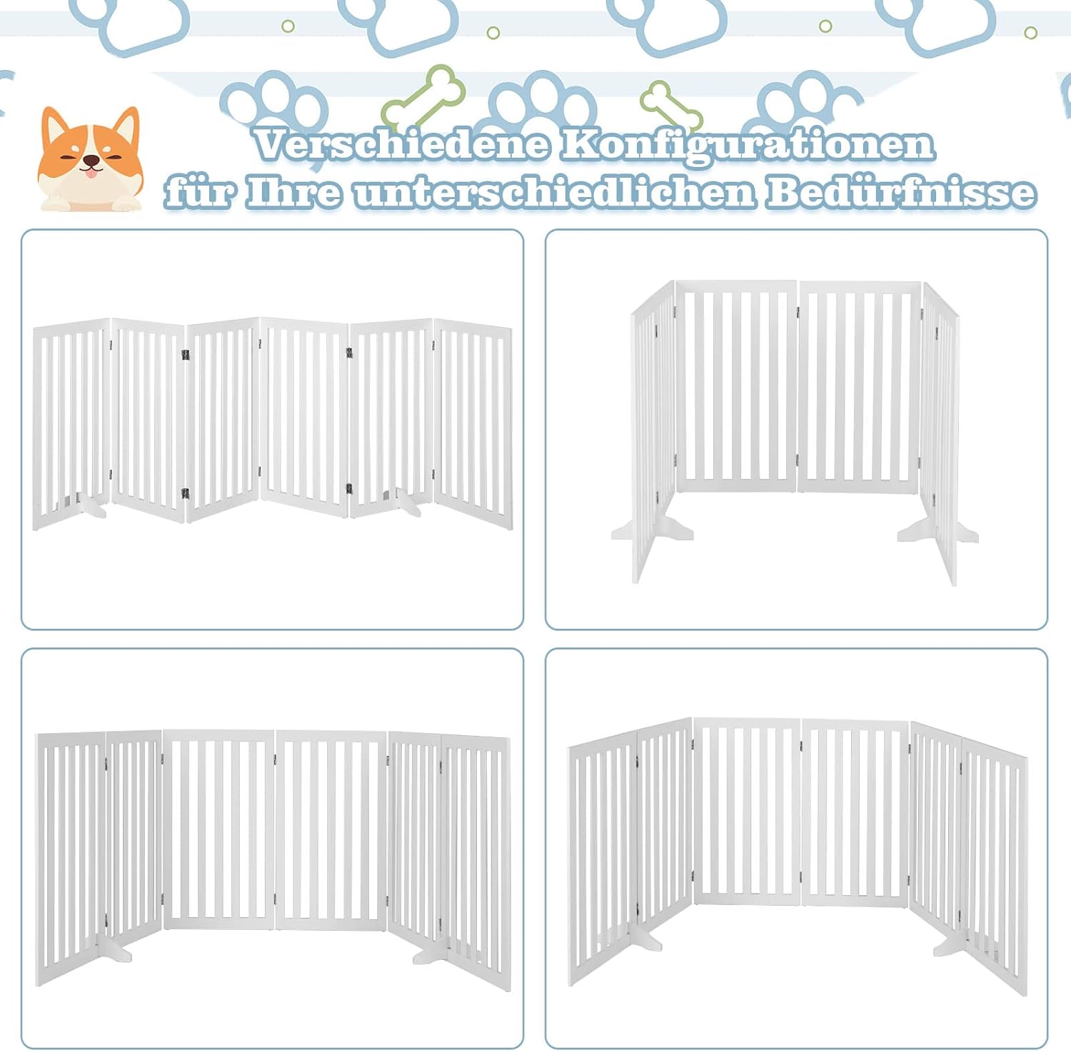 - 【Hübsches & elegantes Aussehen】Durch das schlichte und klassische Design sieht dieses freistehende Tiergatter sehr hübsch aus. Es bietet Tieren einen sicheren Bereich und ist eine tolle Ergänzung für Ihr Zuhause.