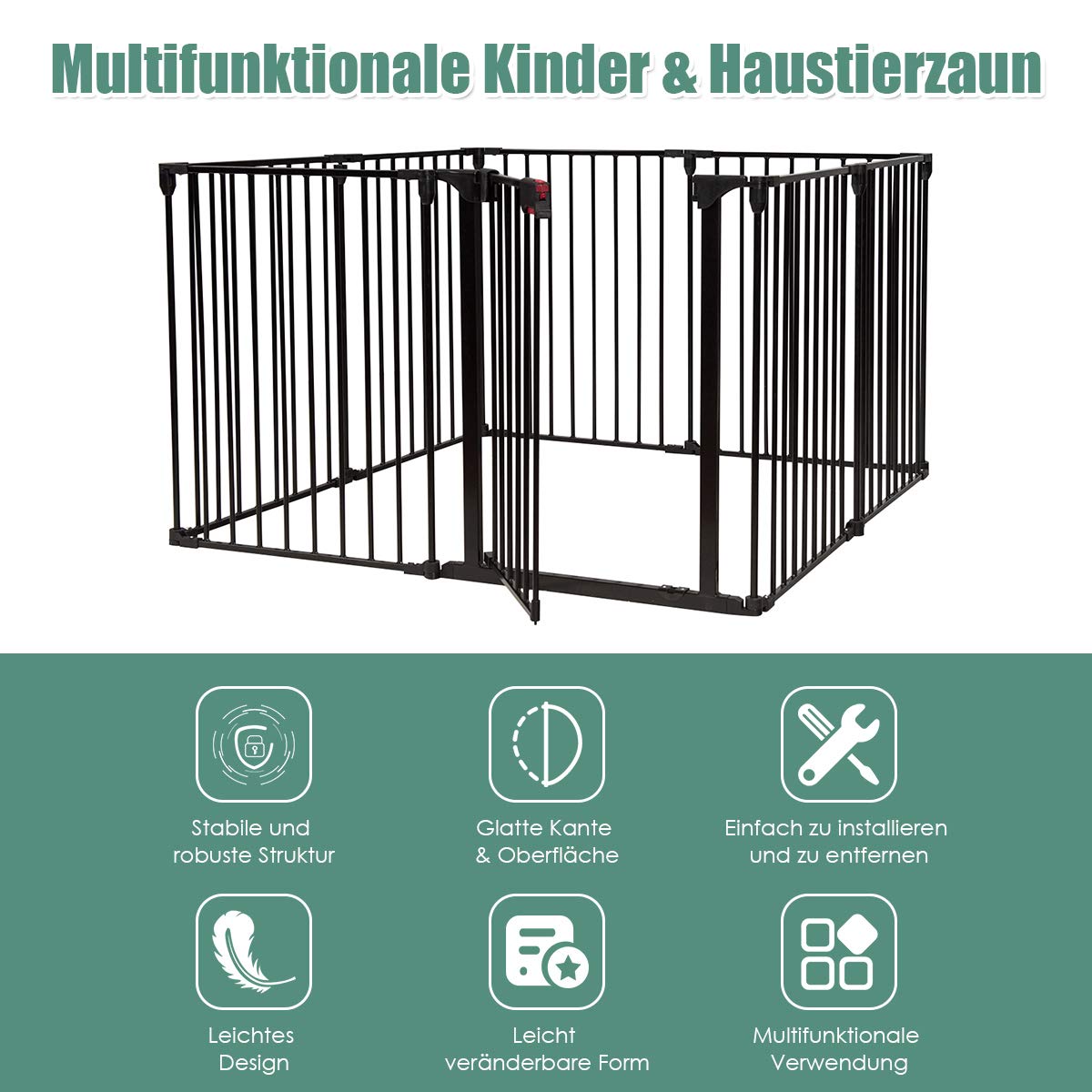 - 【Mehrzweck Kinderspielgitter】Mit unserem Schutzgitter lässt sich ein geräumiger Spielraum für Baby oder Haustier schaffen. Babys im Alter von 6 bis 24 Monaten werden darin schöne Zeit verbringen. Richten Sie das Gitter um Kamin ein, kann es Baby vor potenzieller Verbrennung schützen.