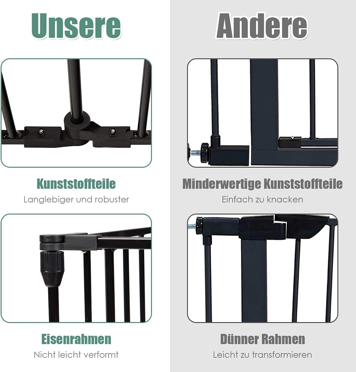 • 【Sicherheit & haltbares Material】Das Doppelschloss-Design kann verhindern, dass die Tür versehentlich von Babys geöffnet wird, und ermöglicht gleichzeitig die Einhandbedienung. Die starken Stahlrohre und Verbindungsstücke bieten den Kippschutz und garantieren die Sicherheit vom Baby.