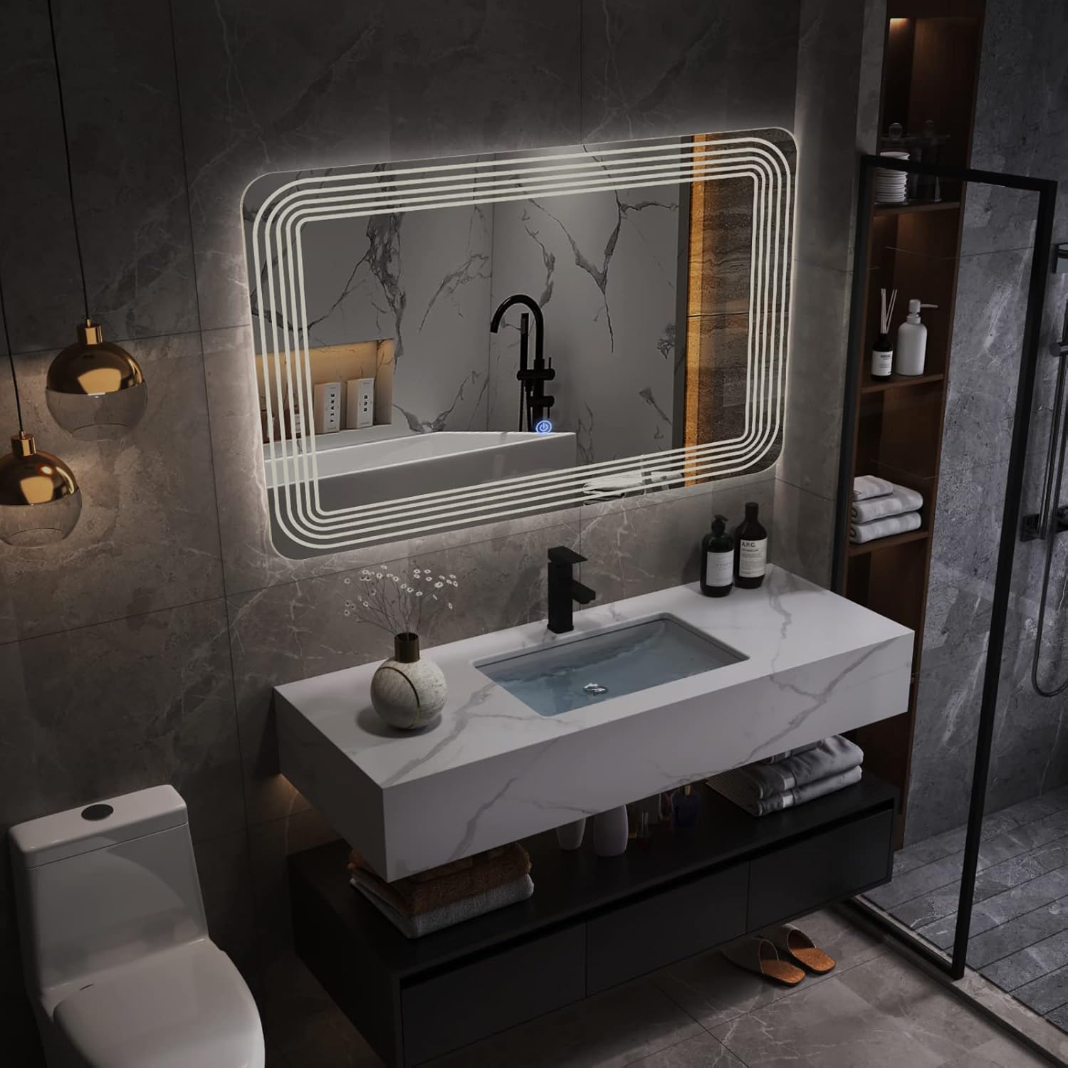 - 【Kupferfreier HD-Spiegel】Durch die Verwendung des kupferfreien Materials hat dieser Spiegel im Vergleich zu den üblichen silberbeschichteten Spiegeln eine verbesserte Qualität und Haltbarkeit. Unser LED-Badezimmerspiegel wurde mit 4 Schichten