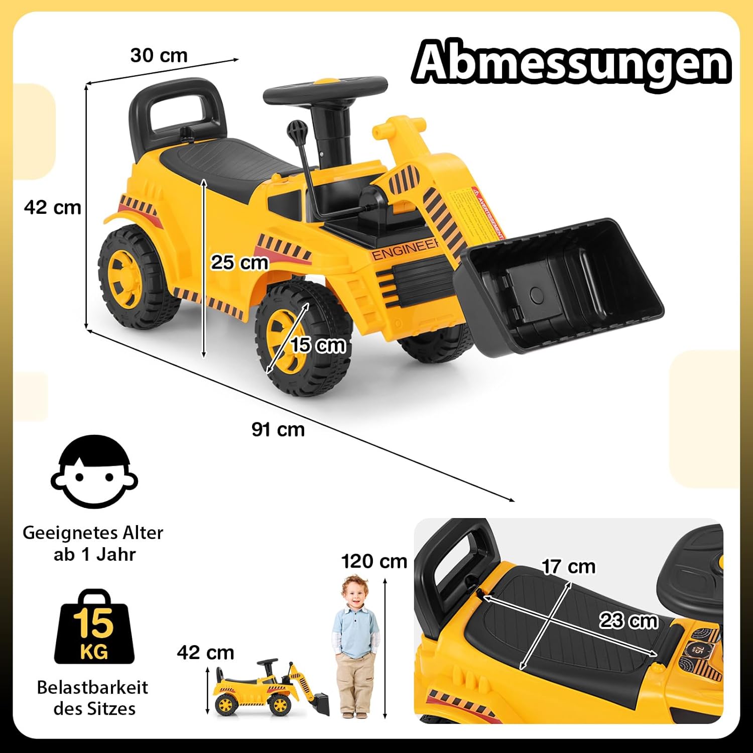 - 【Optimale Stabilität】Der Spielzeug-Bagger besteht aus hochwertigem PP und ist robust, während seine stützende Rückenlehne und die kippsichere Basis die Stabilität fördern. Dank pannensicherer Räder kann das Rutschfahrzeug verschiedene