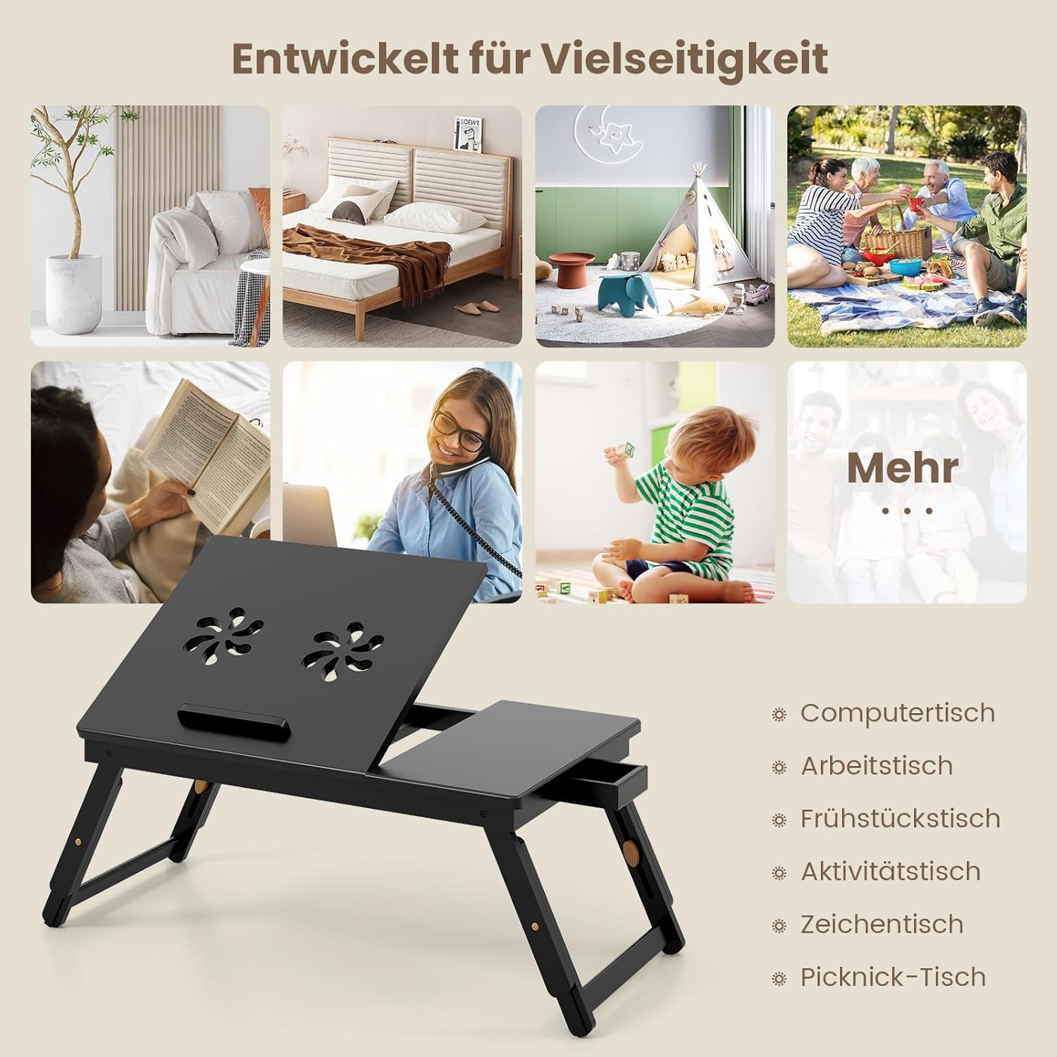 - 【Natürliches Bambusmaterial】 Hergestellt aus Bambusholz, ist dieser Laptoptisch ausgezeichnet in hoher Stabilität und erhöhter Haltbarkeit für eine längere Lebensdauer. Die glatte polierte und natürliche Oberfläche fühlt sich angenehm an und