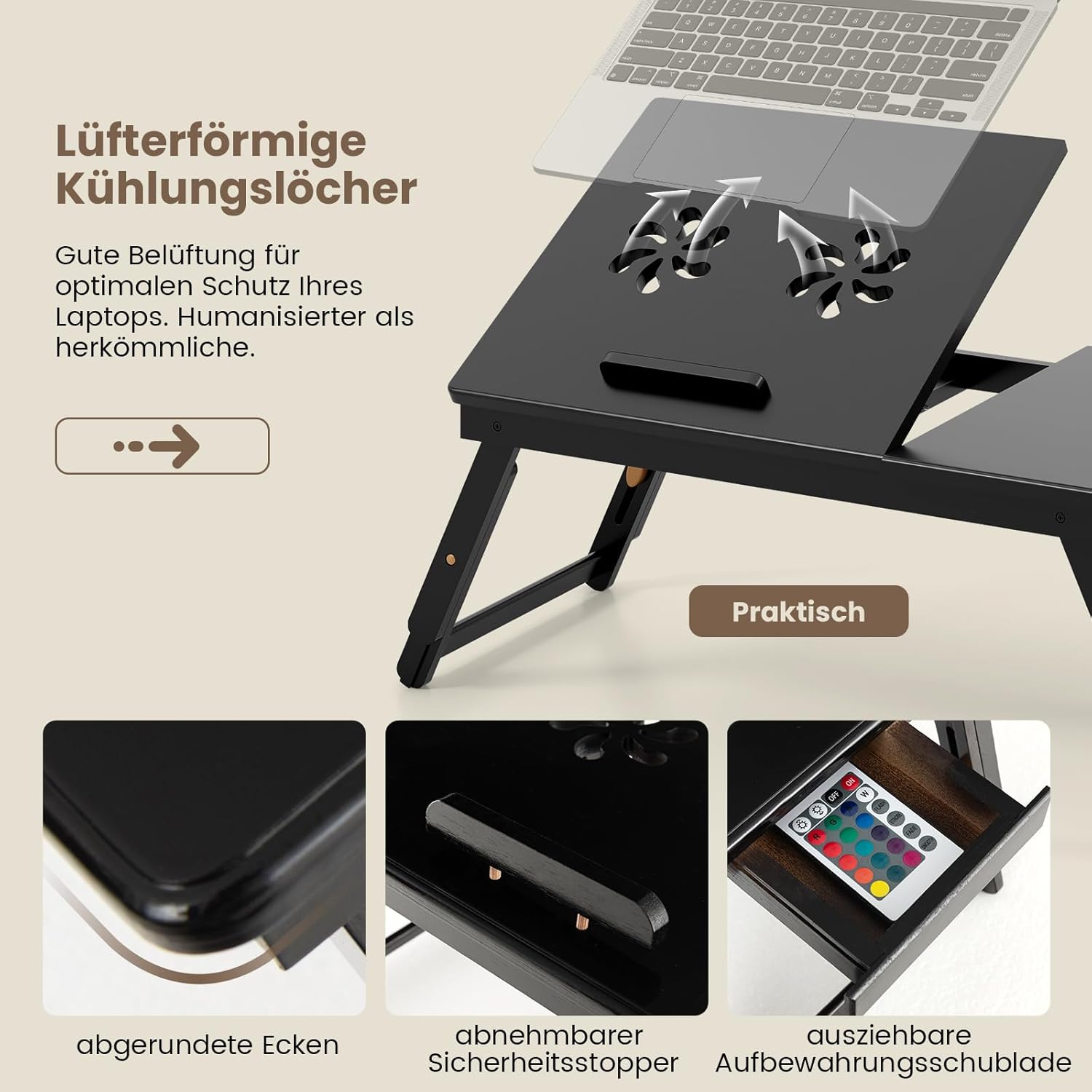 - 【Vielfältiger Stauraum mit Seitenschubladen】 Mit einer Grösse von 53 cm x 33 cm bietet die Tischplatte ausreichend Platz für Ihren Laptop, Teetasse, Mobiltelefon, Bücher und mehr. Die seitliche ausziehbare Schublade ist speziell für Ihren
