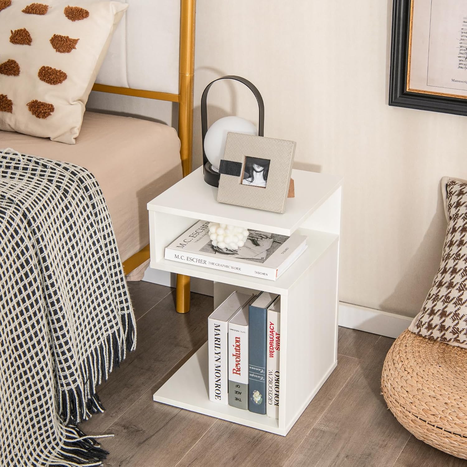 - 【Ausreichend Stauraum】Der Beistelltisch verfügt über eine Platte mit den Massen 33 cm L x 33 cm B, auf der Sie zarte Dekorationen präsentieren können. Nebenbei verfügt er über 2 offene Fächer und bietet geräumigen Stauraum für Zeitschriften,