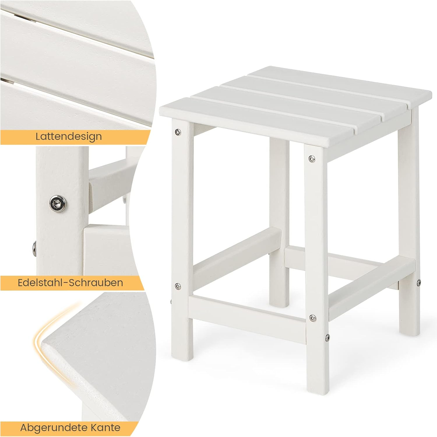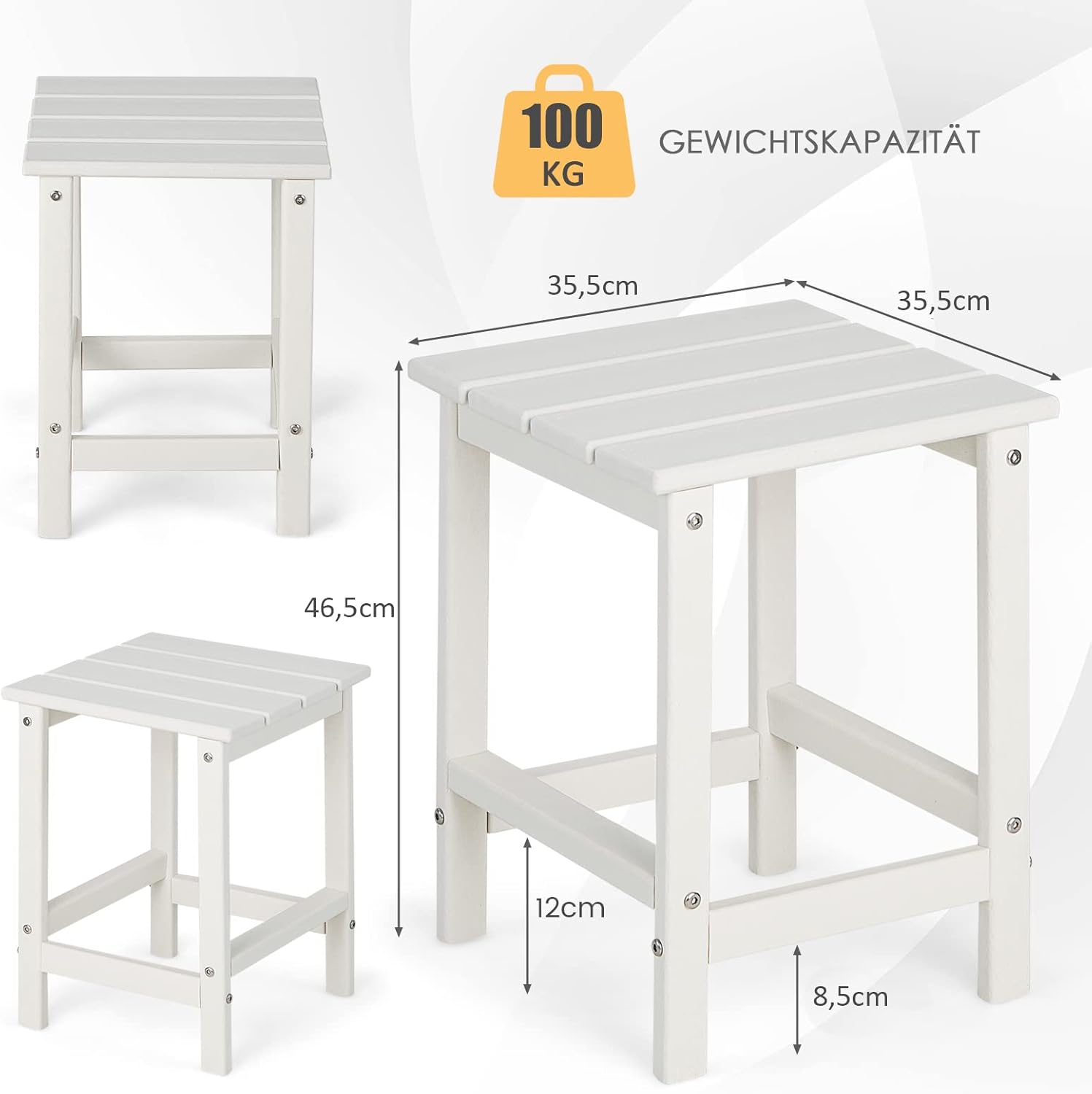 - 【Einfache Installation】Die Montage dieses Beistelltisches ist ganz einfach und spart Ihnen wertvolle Zeit. Dieser Beistelltisch misst 35,5 x 35,5 x 46,5 cm (L x B x H) und passt besser zu Ihren Adirondack-Stühlen im Freien und Sofas im Innenbereich