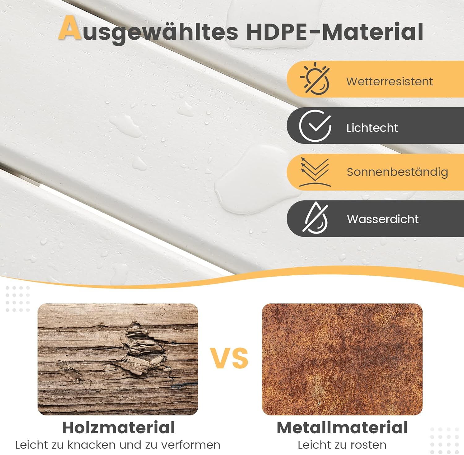 - 【Wir kümmern uns um unsere Zukunft】Wir glauben, dass der Schutz der Erde der Schutz der Zukunft ist. Daher machen wir diesen HDPE-Gartentisch recycelbar, da er aus recycelten Plastikflaschen hergestellt wird. Und der Bauprozess ist auch