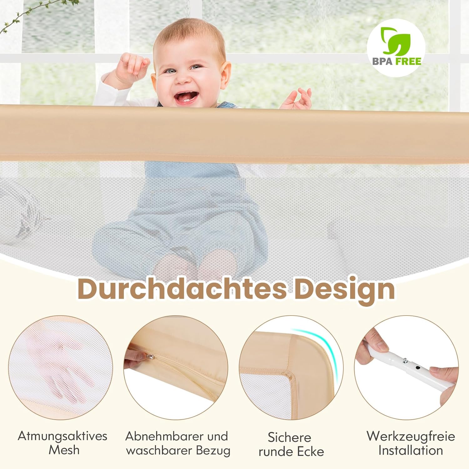 - 【Erhöhte Sicherheit】Das 150 cm lange Bettgitter verfügt über eine zusätzliche Querstrebe, die mit Anti-Kollisionsschaum umwickelt ist, um die Lücke zwischen Gitter und Bett zu beseitigen und Ihr Kind die ganze Nacht sicher zu halten. Das sichere