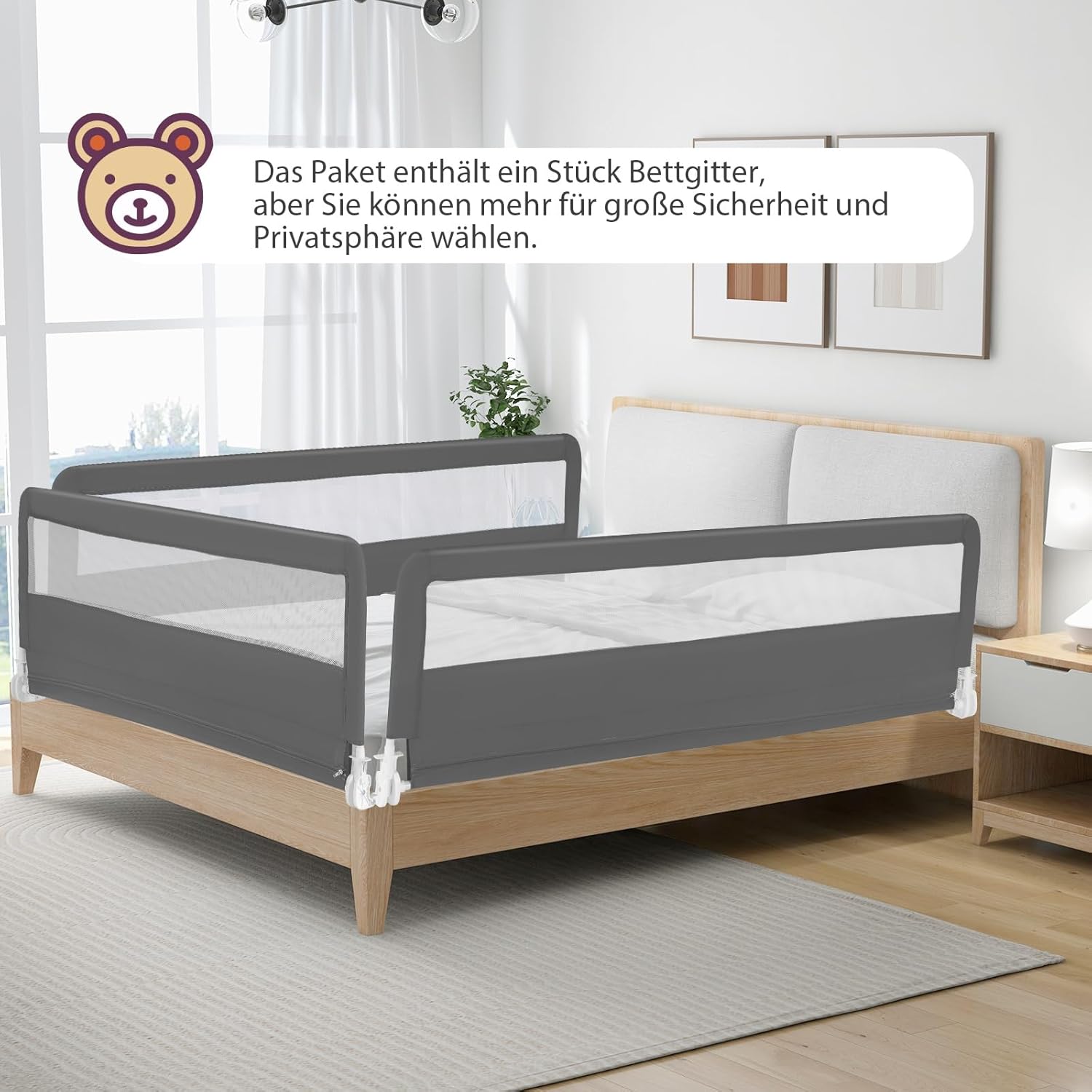 - đŁăSichere & angenehme SchlafenszeităMit einer LĂ€nge von 180 cm und einer Höhe von 56 cm bietet dieses Bettgitter Babys einen hervorragenden Schutz beim Schlafen und ermöglicht Eltern eine ruhige Schlafenszeit.